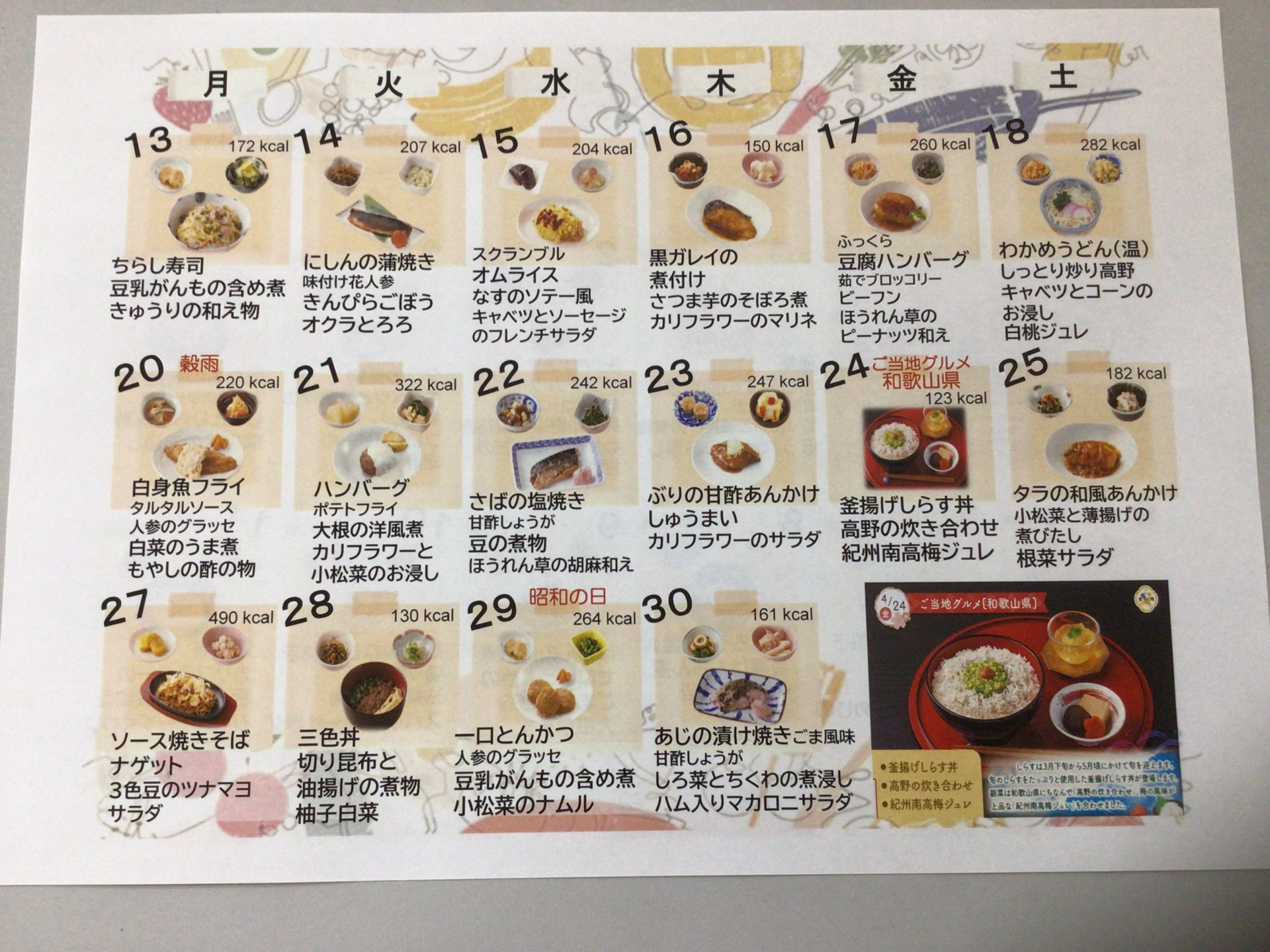 今回は4月の献立をお届けします。