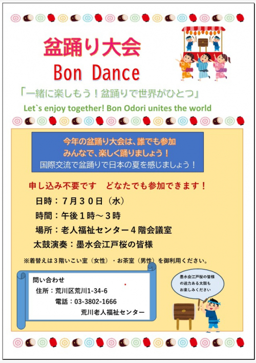 2025.12.12 今日はボラサロの日♪ 活動報告 2025.12.11 12月のおはな教室、今月のおはなは・・・? 活動報告 2025.12.10 「盆踊り」を開催しました 活動報告 2025.12.09 リーチ!一発!ツモ! ~「1から始めるマージャン教室」開催いたしました! 活動報告 2025.12.09 初心者のためのスマートフォン講座が行われました。 活動報告 2025.12.08 本日の「脳トレ講座」 活動報告 2025.12.05 ♬英会話講座♪ 開催しました! 活動報告 2025.12.04 やさしい詩吟講座です 活動報告 2025.12.03 スローエアロビ講座の様子をお届けします 活動報告 2025.12.01 初講座!ひらめきカードサロンが開催されました! 活動報告 2025.11.28 リズムアップ体操を開催いたしました 活動報告 2025.11.28 あらかわカップが行われました。 活動報告 2025.11.27 ボランティアマッチングサイト「YELL」のご紹介 お知らせ 2025.11.26 【募集中】「自分史1分動画プロジェクト」を開催します お知らせ 2025.11.26 【募集中】お楽しみ文化体験「チタプポ体操」を開催します!!! お知らせ 1 2 3 … 52
