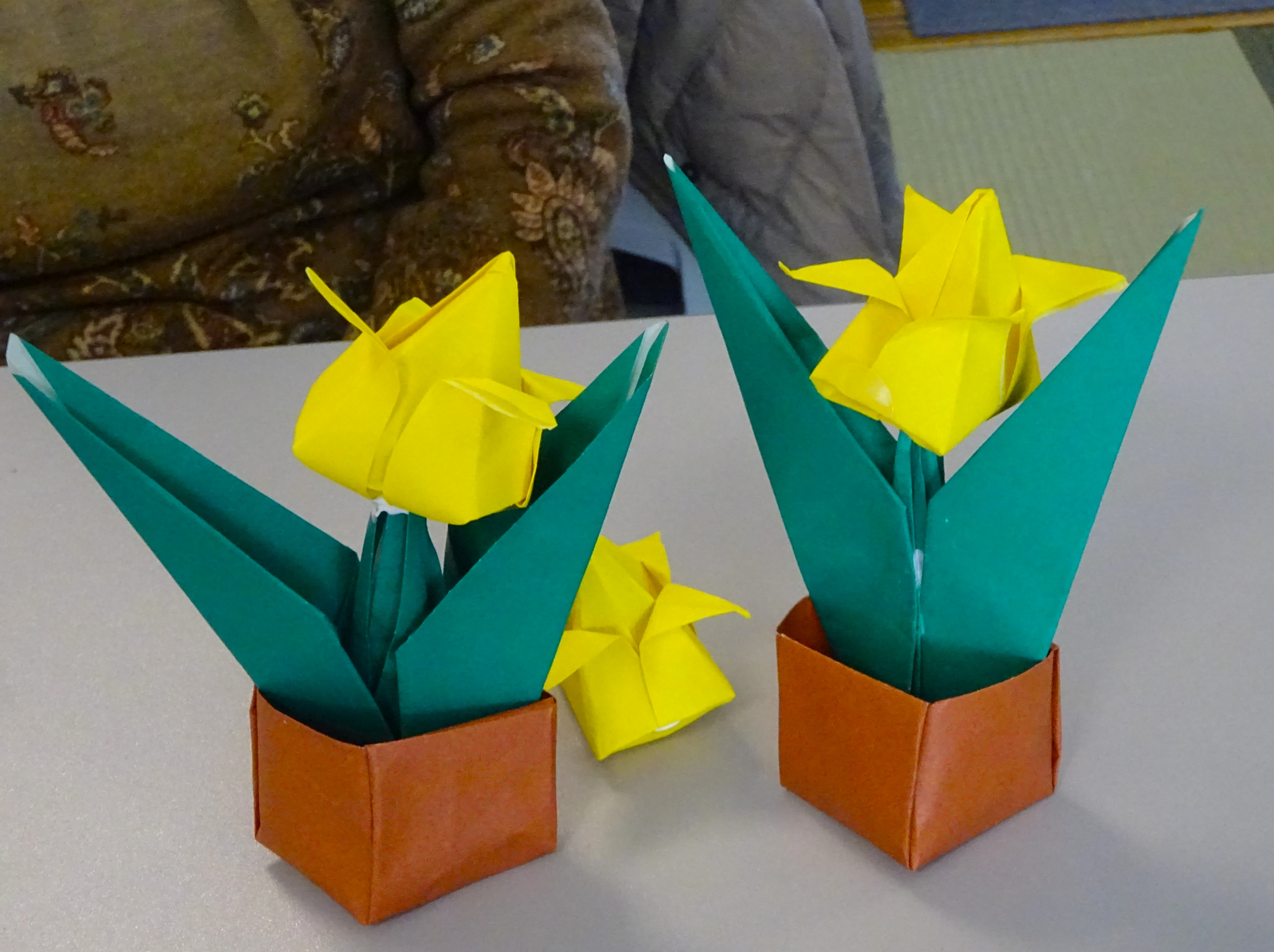 折り方の説明がちょっと難しい鉢も折るので、時間内に仕上がるかドキドキしましたが・・・