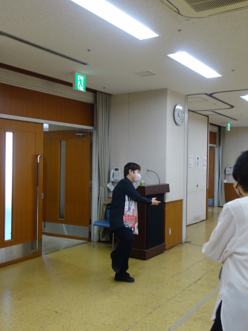 体操はストレッチと筋力トレーニング主体に行なわれます(スクワットで筋力を鍛えています)