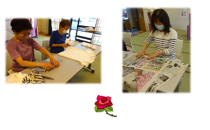 「新聞紙の袋作り」と「広告のゴミ箱作り」「ウェス切り」の作業です。