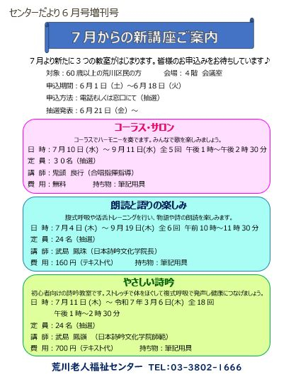 7月からの新講座のご案内