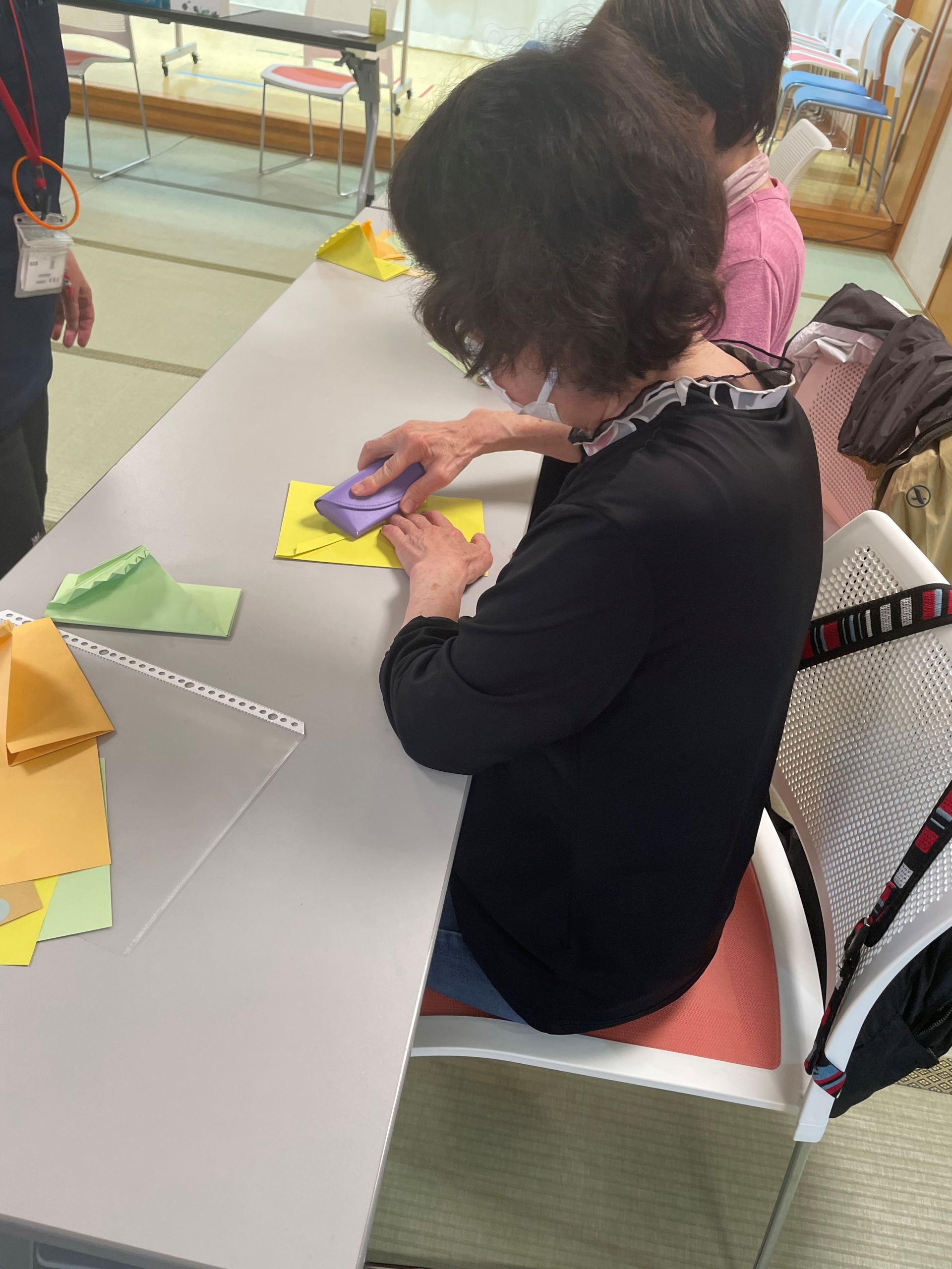 今日の折り紙教室はちょっとしたお祝いにも使えるミニ封筒を作ります。