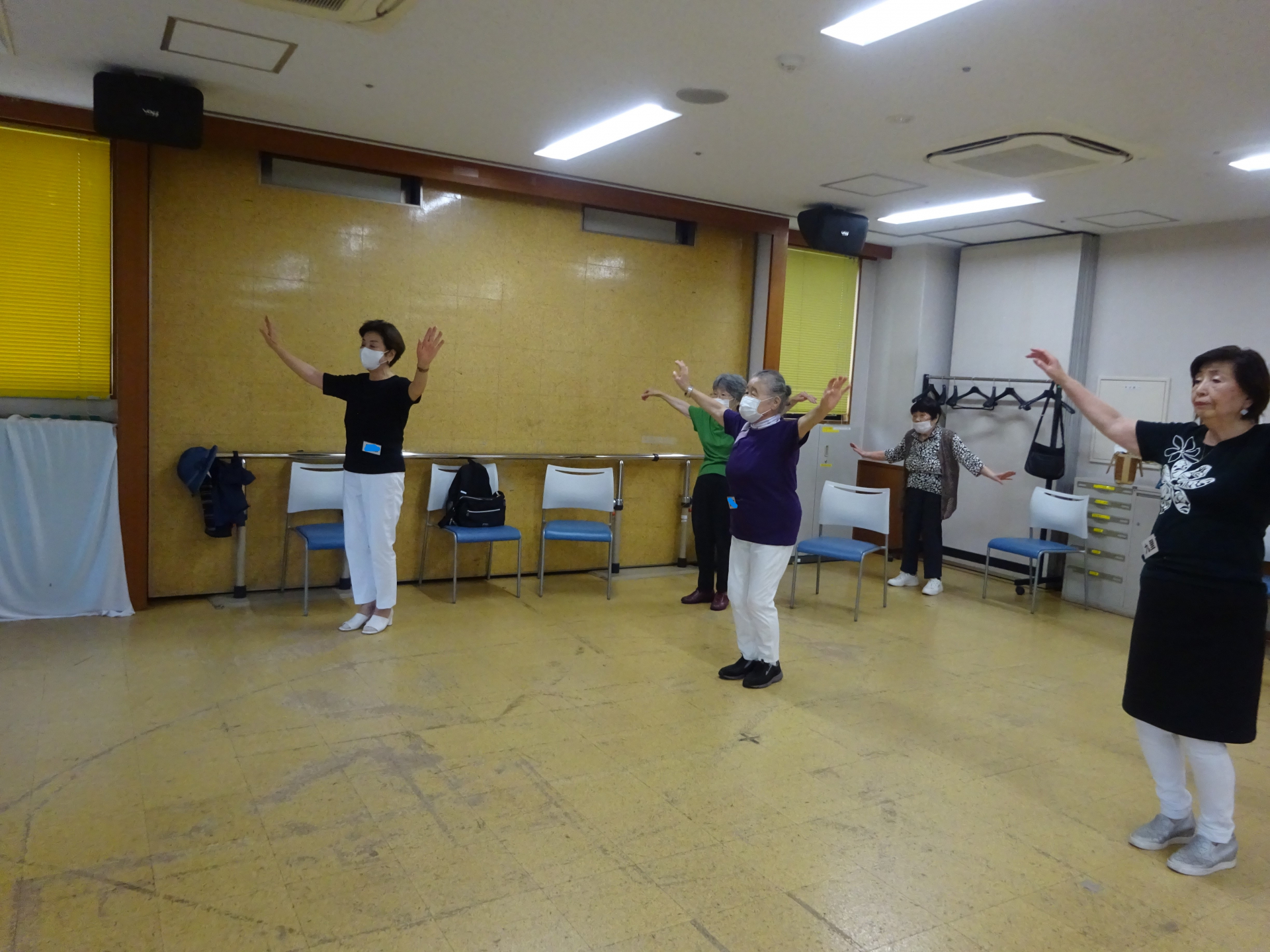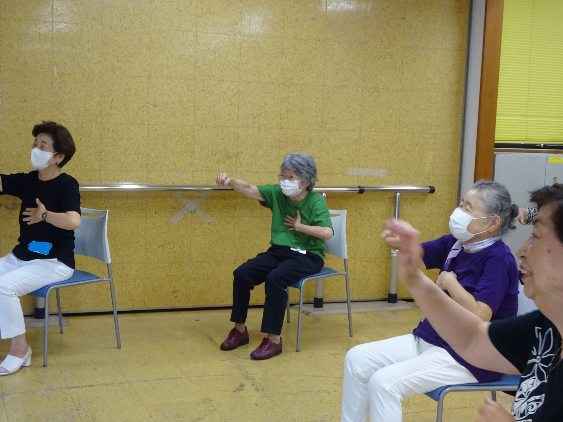 知っている曲は歌いながら体操をされている方もいらっしゃいます。