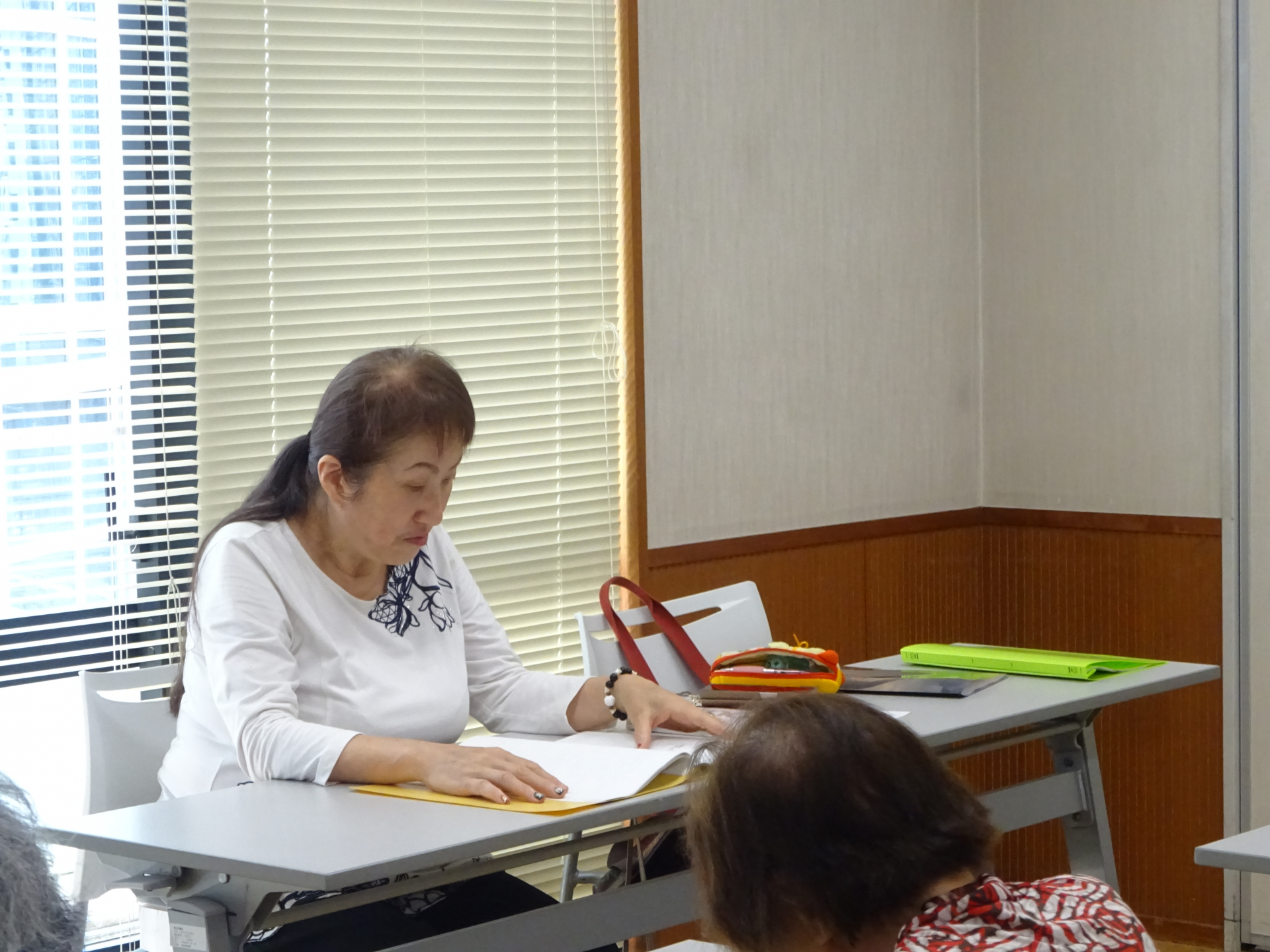 皆さんで、腹式呼吸をしながら発声練習をしてから、1人1人声を出して文章を読みました。活舌のトレーニングですが、まだ始まったばかりなので緊張もありましたが、