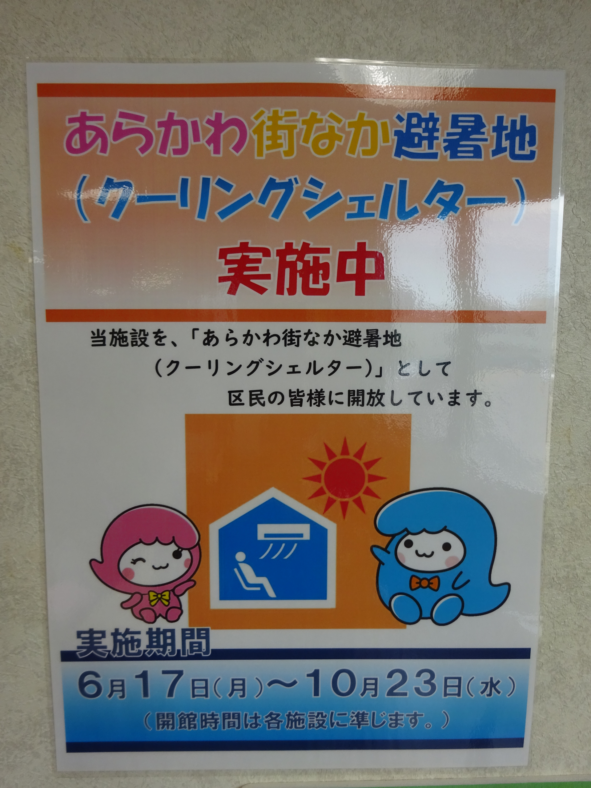 荒川区においても暑さをしのげる場を確保し、極端な高温時における熱中症発生を防止するため「あらかわ街なか避暑地」をクーリングシェルターとして指定します。