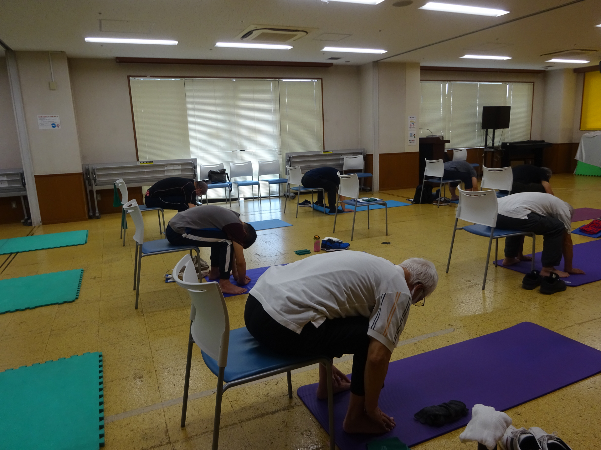 外は溶けちゃいそうな気温の中、涼し~いセンターの中で元気に「男性のための若返りヨガ教室」が開催されました♪