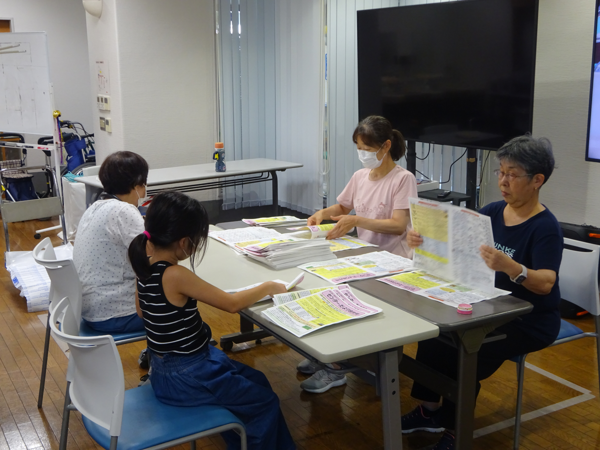 今回は、センターだよりの折り作業です。