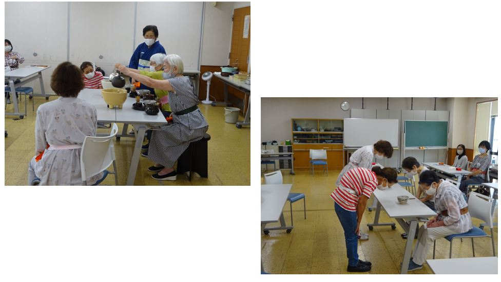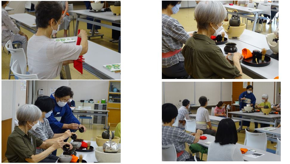 袱紗のさばき方、茶わんの拭き方、お抹茶の入れ方をグループにわかれて習います。