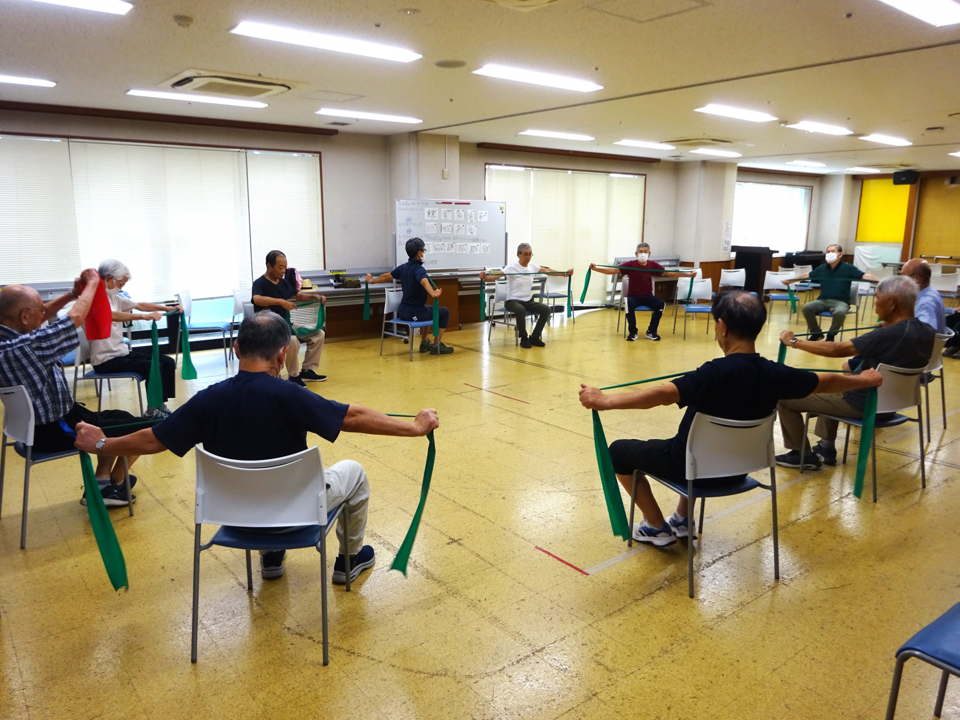最初にセラバンドの安全を確認してストレッチと筋トレを行ないます。