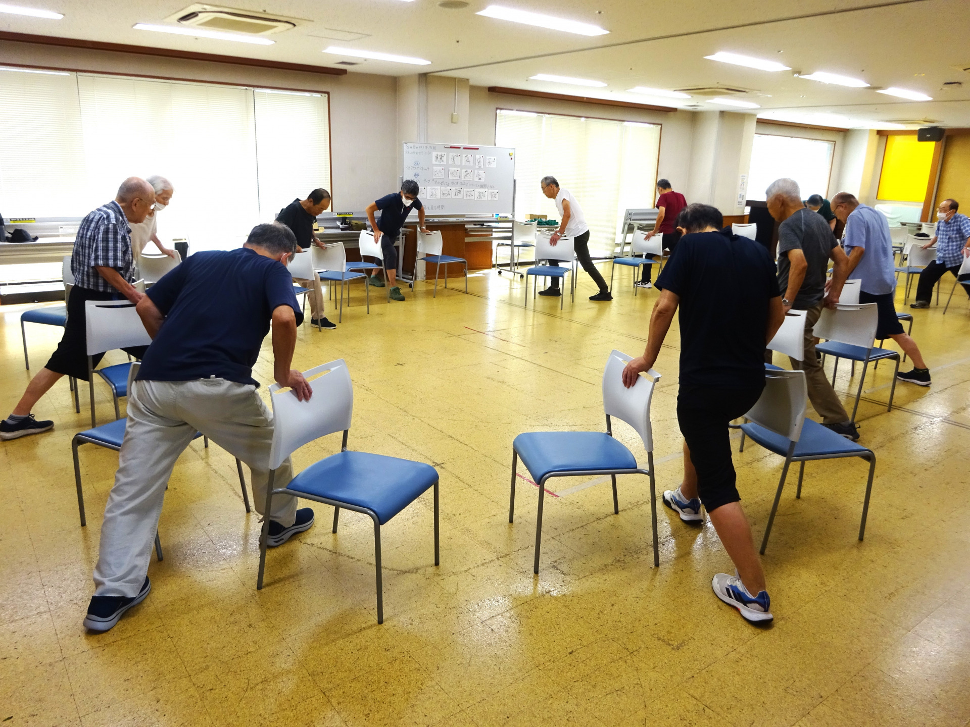 今日のメニューは1,ストレッチとセラバンド2、椅子2台でストレッチ