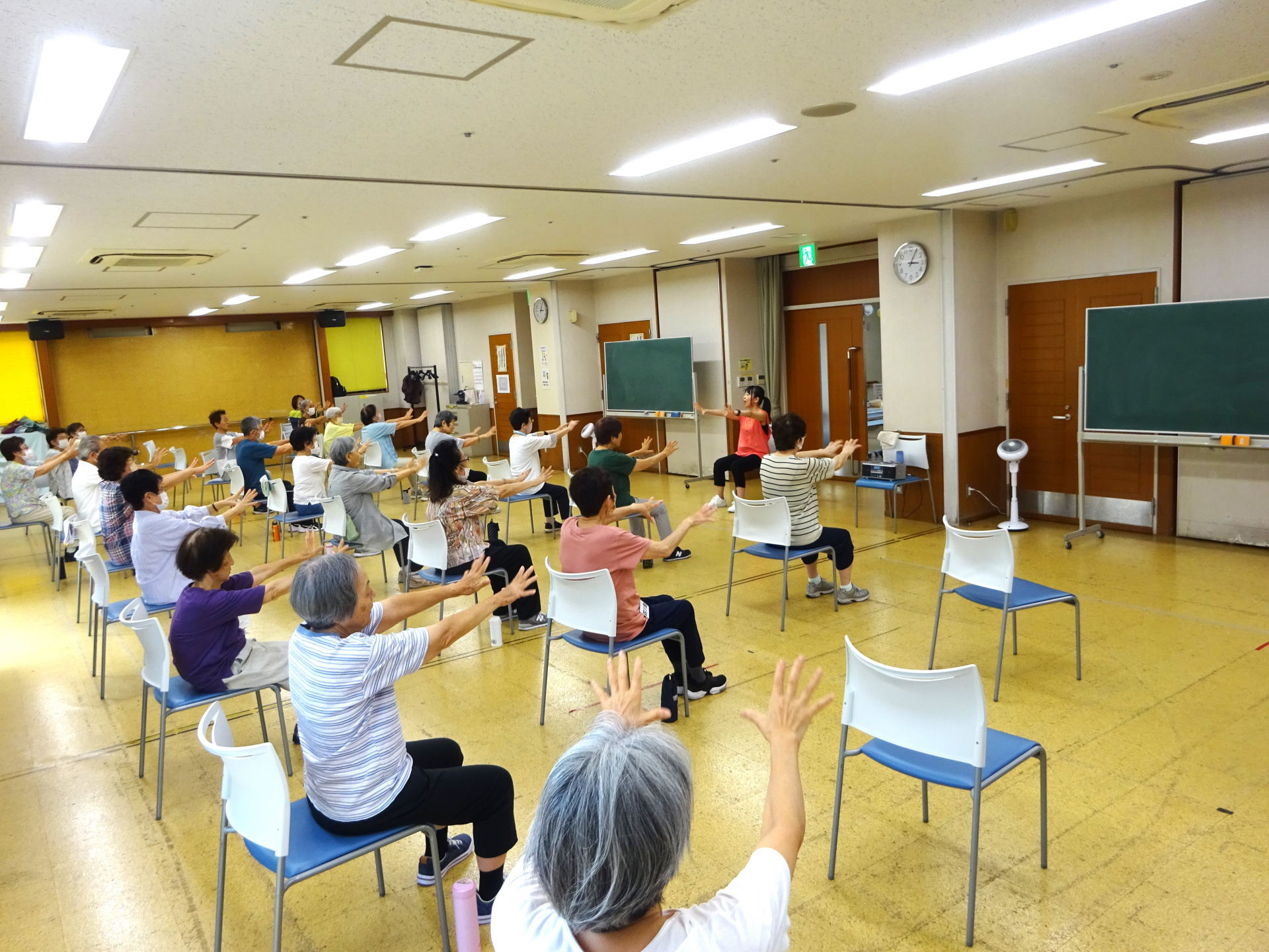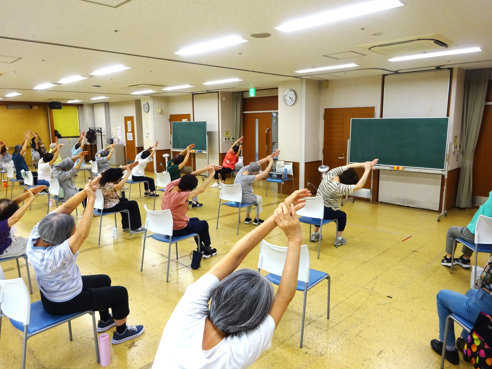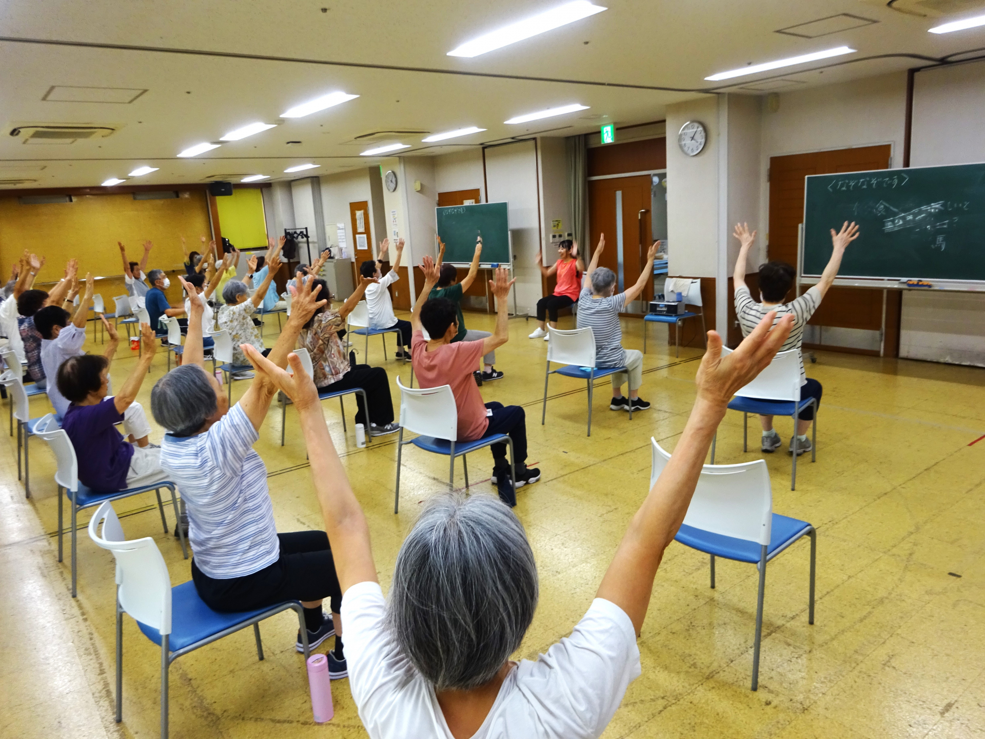 認知症予防のお教室で体を動かしながら認知症予防を行ないます。