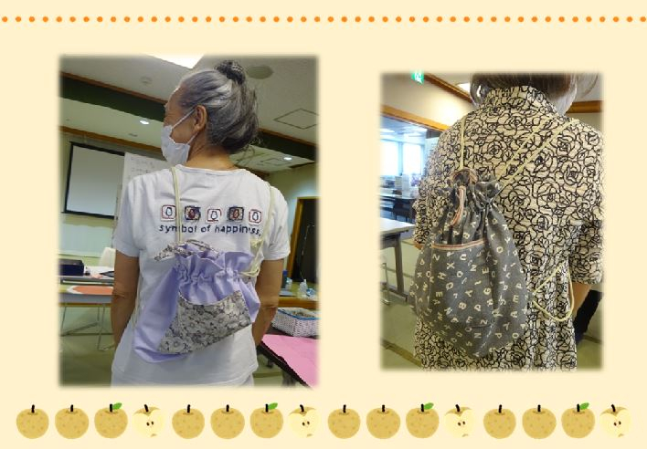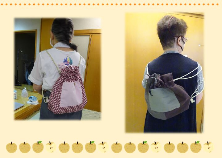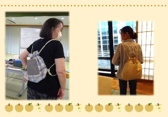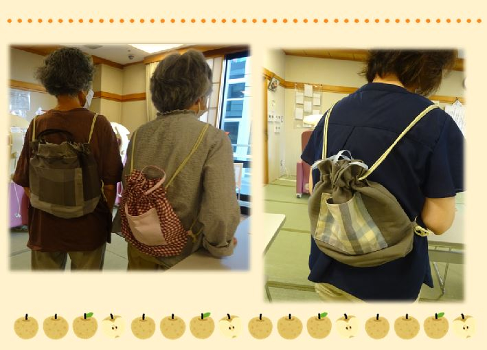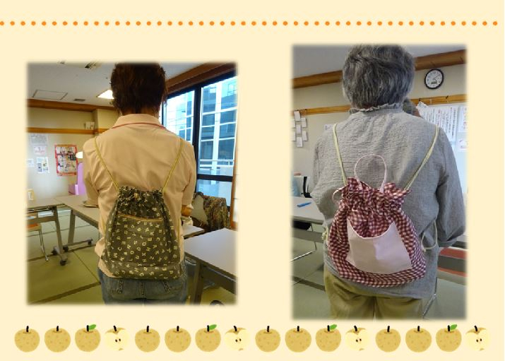 背中に背負って記念撮影をしました。「あらかわナップサックコレクション」です。
