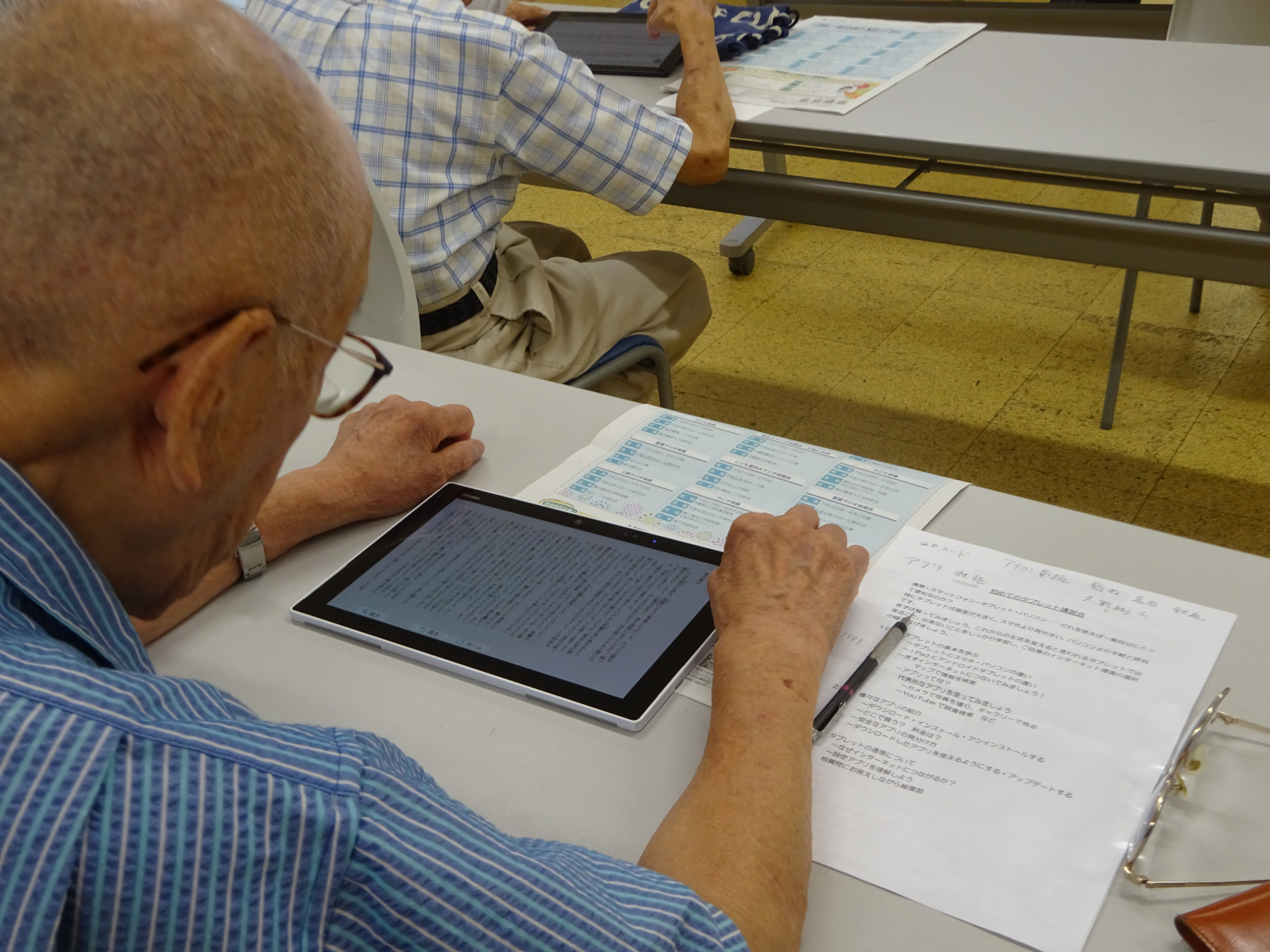その後タブレットで様々なアプリくを紹介され、ダウンロード、インストール、アンインストールの方法等を