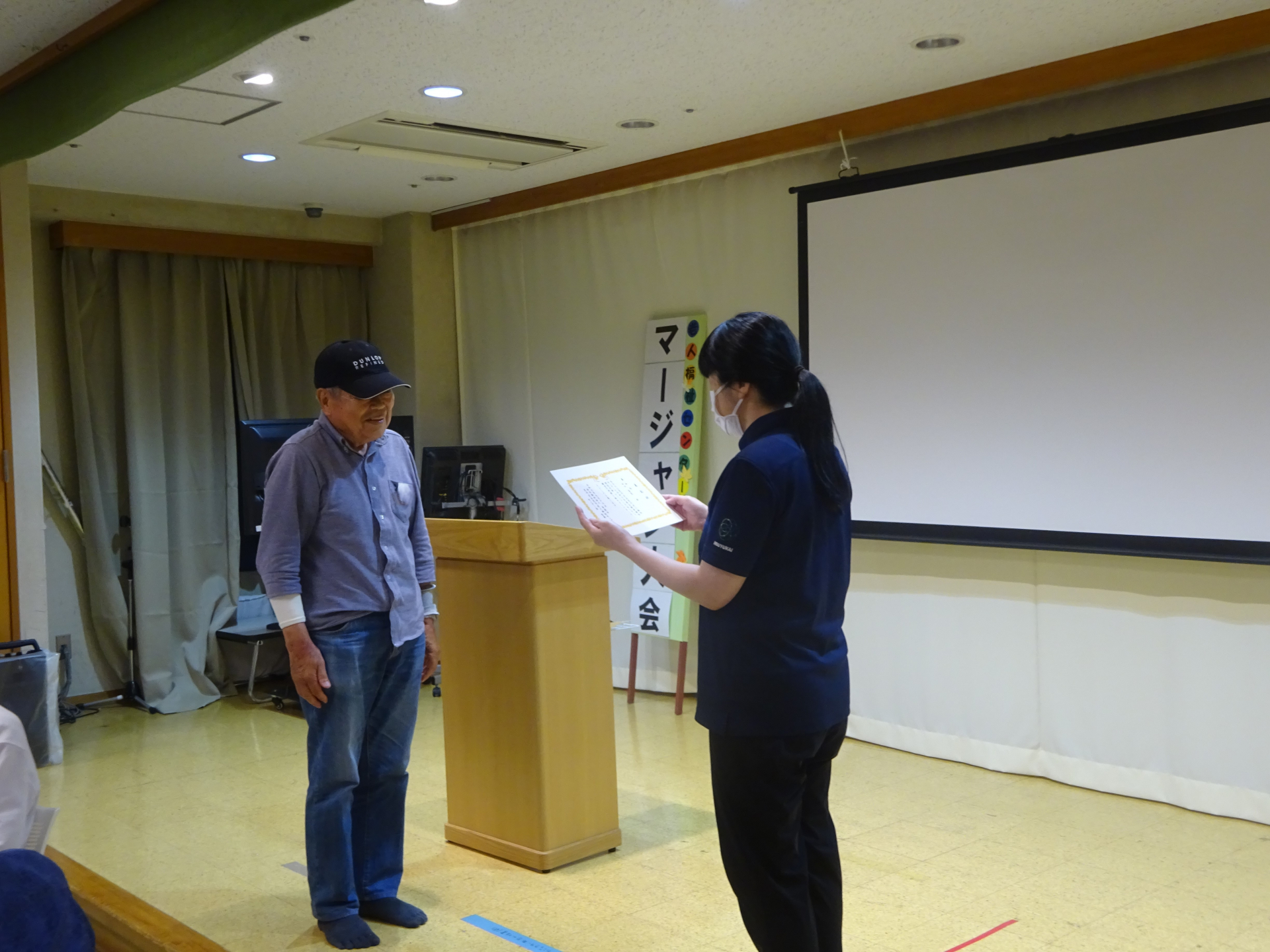 大会の最後には勝ち組上位4名と、最高年齢の方に賞状をお渡ししました。