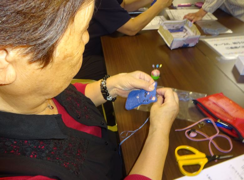 今日は10月の手作り教室、「猫のキーケース」を作りました。