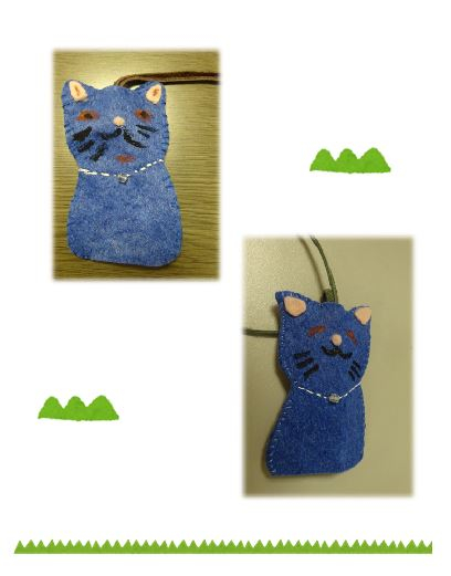 厚いフェルトに顔と首輪を描き、回りを縫ったら完成です。