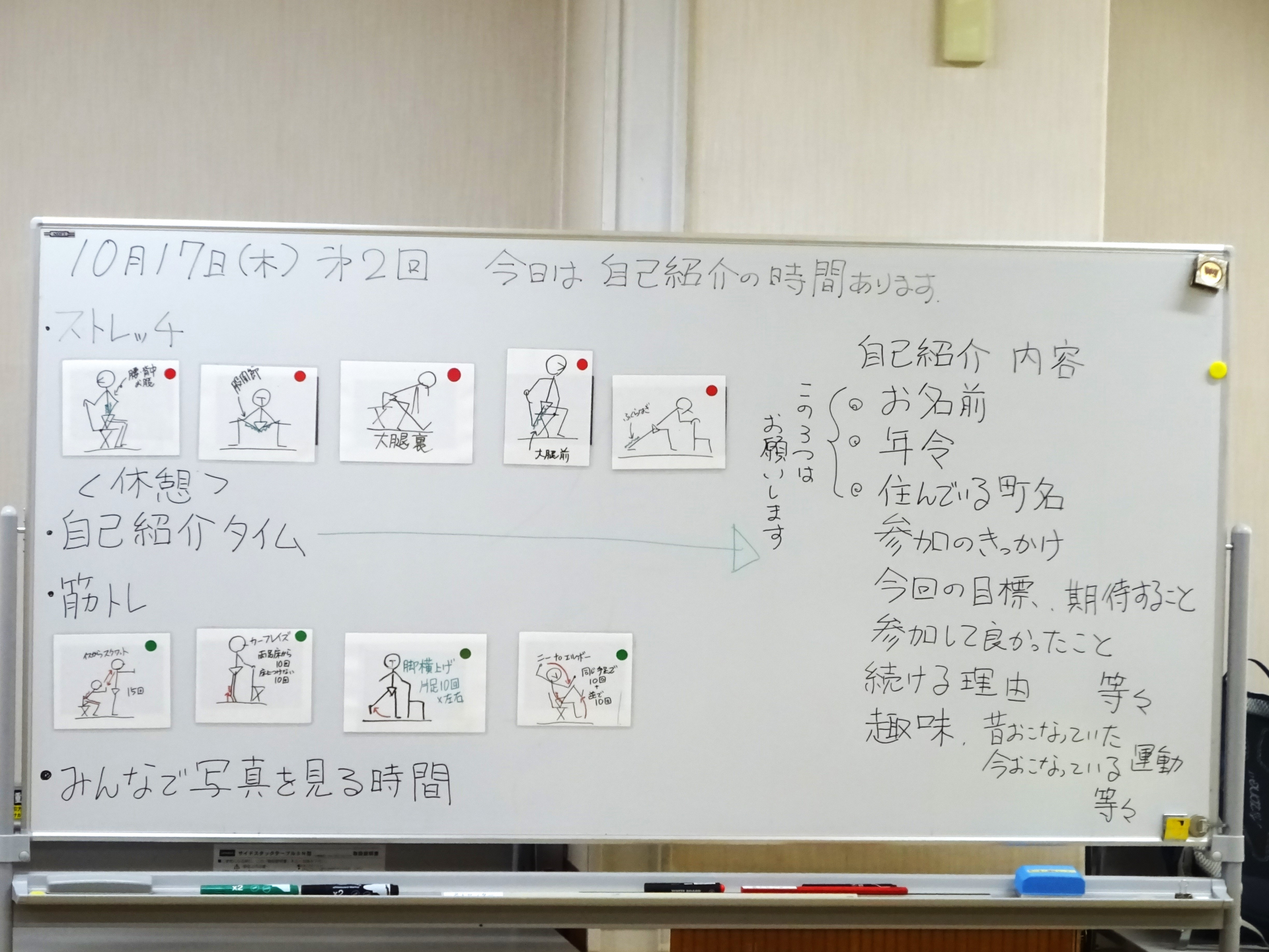 最初に本日の体操の予定を先生がホワイトボードに記入して始まります。