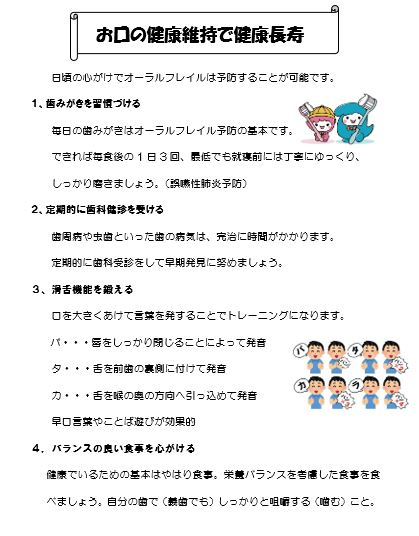 日頃の心がけでオーラル(口腔)フレイル(虚弱)を予防し、全身の健康を守りましょう。