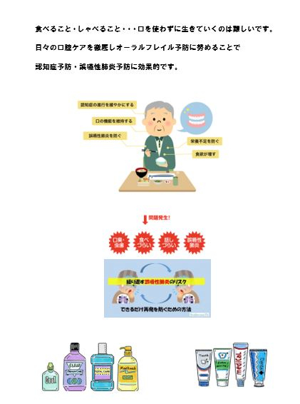 以上を心掛けて、認知症予防。誤嚥性肺炎予防をしていきましょう!!