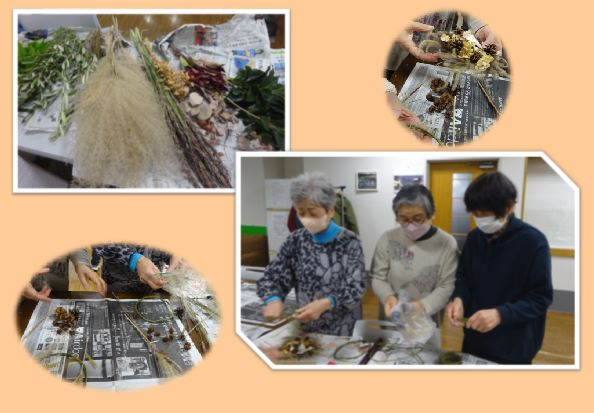 お話をしながら、クリスマス&お正月のリースとスワッグを作っていきます。