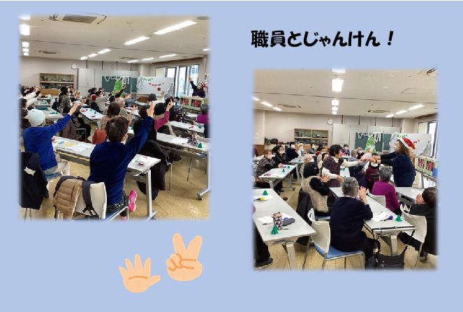 職員とじゃんけんぽん!みんなで行うと盛り上がります。