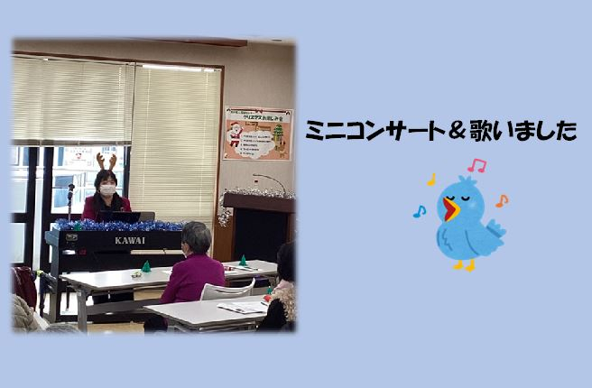 まずは「ミニコンサート」クリスマスソングをじっくり聞いたあとは一緒に歌いました。