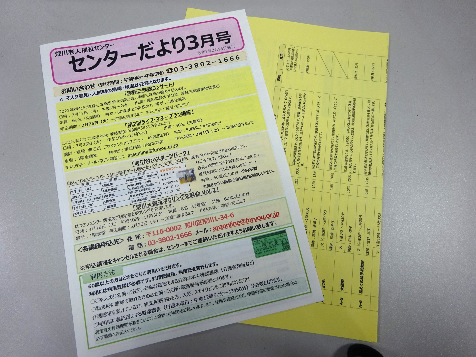 また、そのお便りの中に4月からの新しい講座の黄色いチラシを挟んでいただきました。