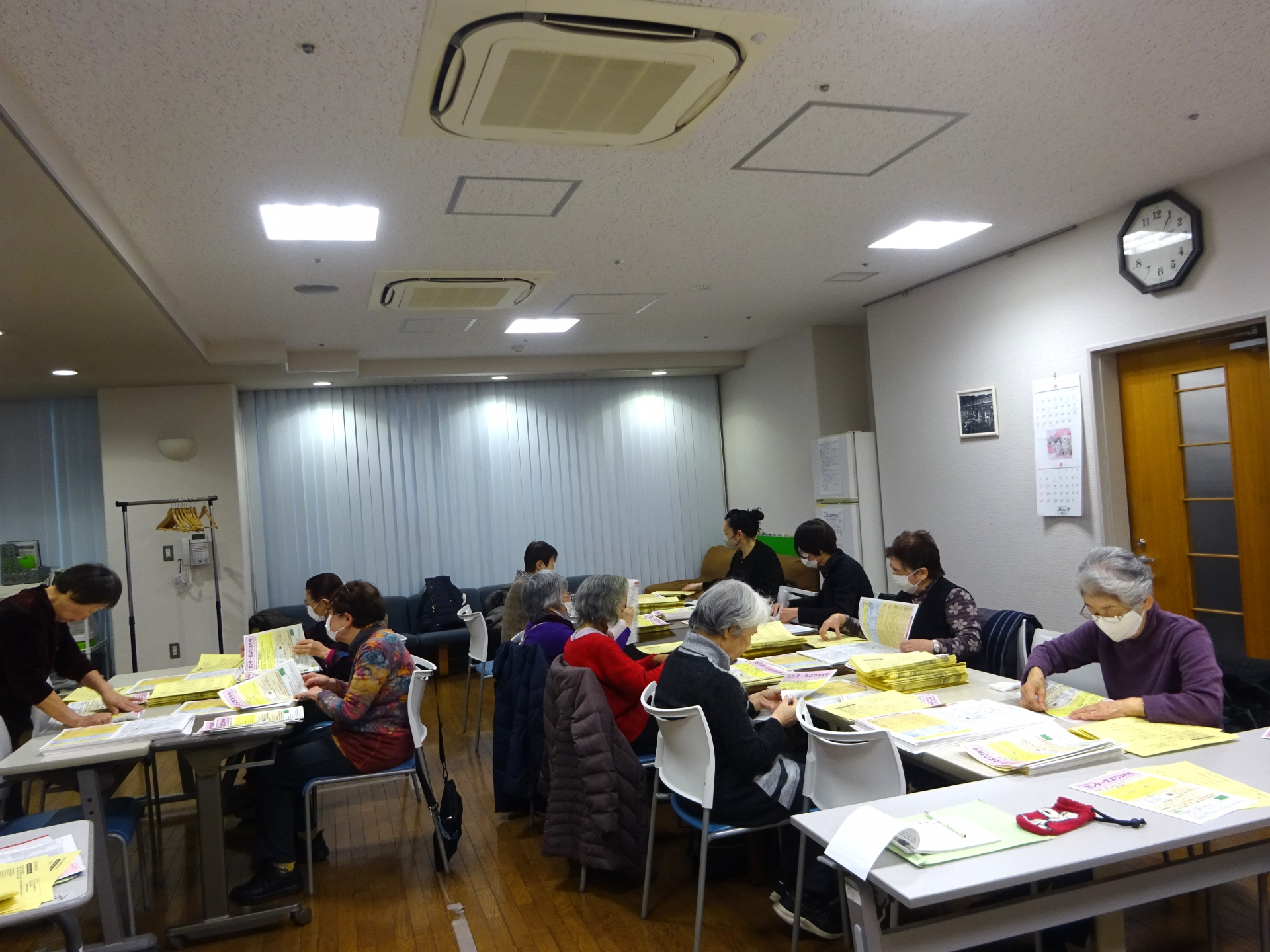 今日はみなさんに3月号のお便りを半分に折る作業をしていただきました。