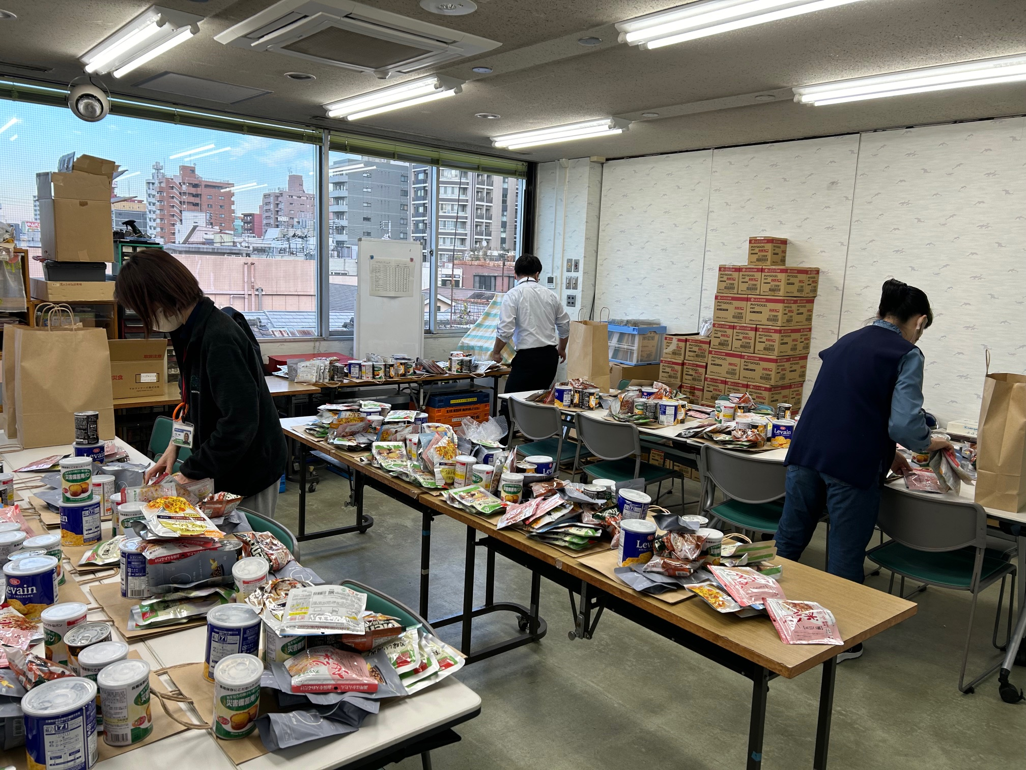 本日は、社協の職員の方、トラム荒川の職員の方と一緒に食品の仕分け、袋詰めの作業を行いました。