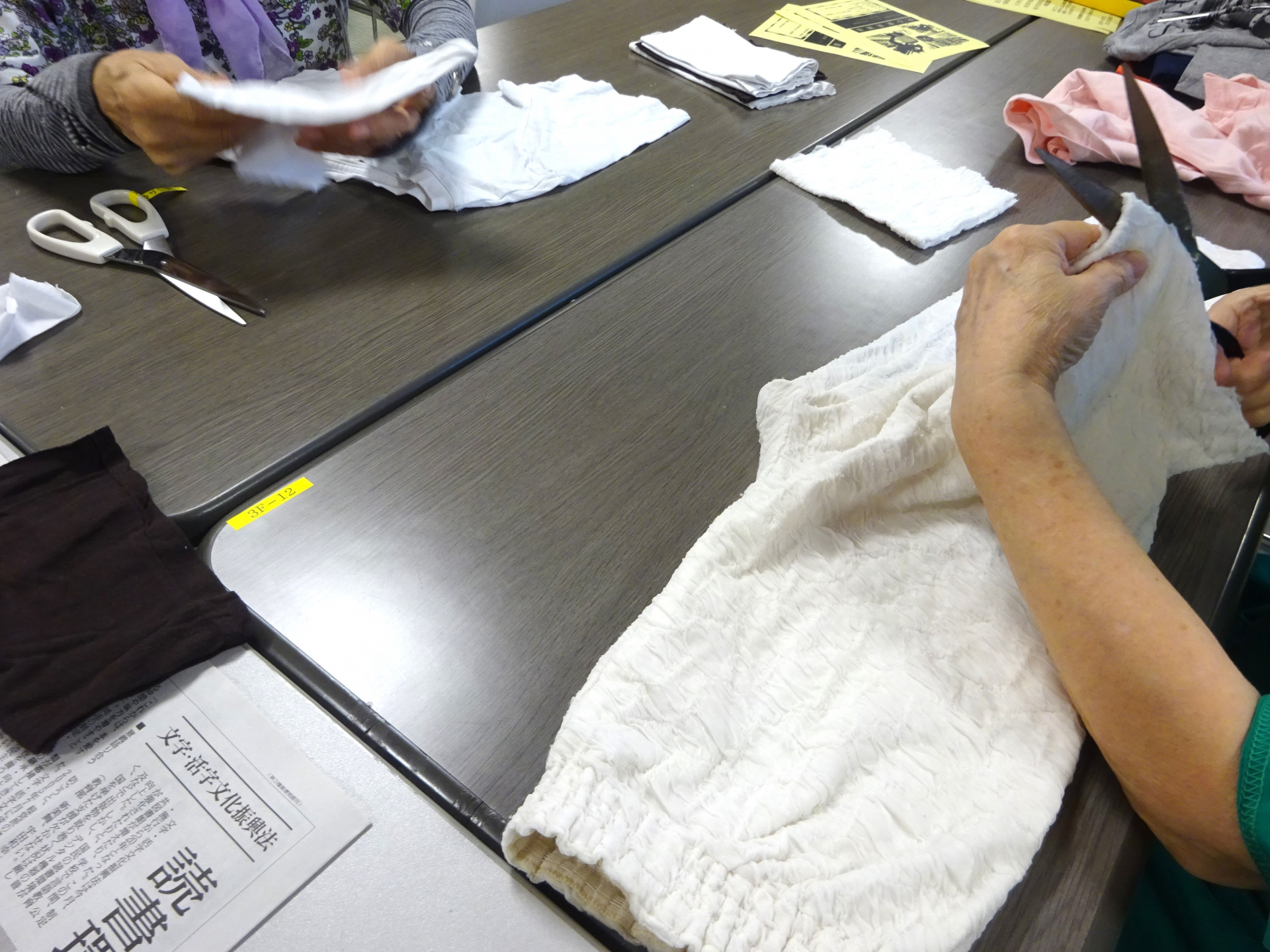 今日はウエス切り、新聞折り、マージャンパイの消毒を行っていただきました。