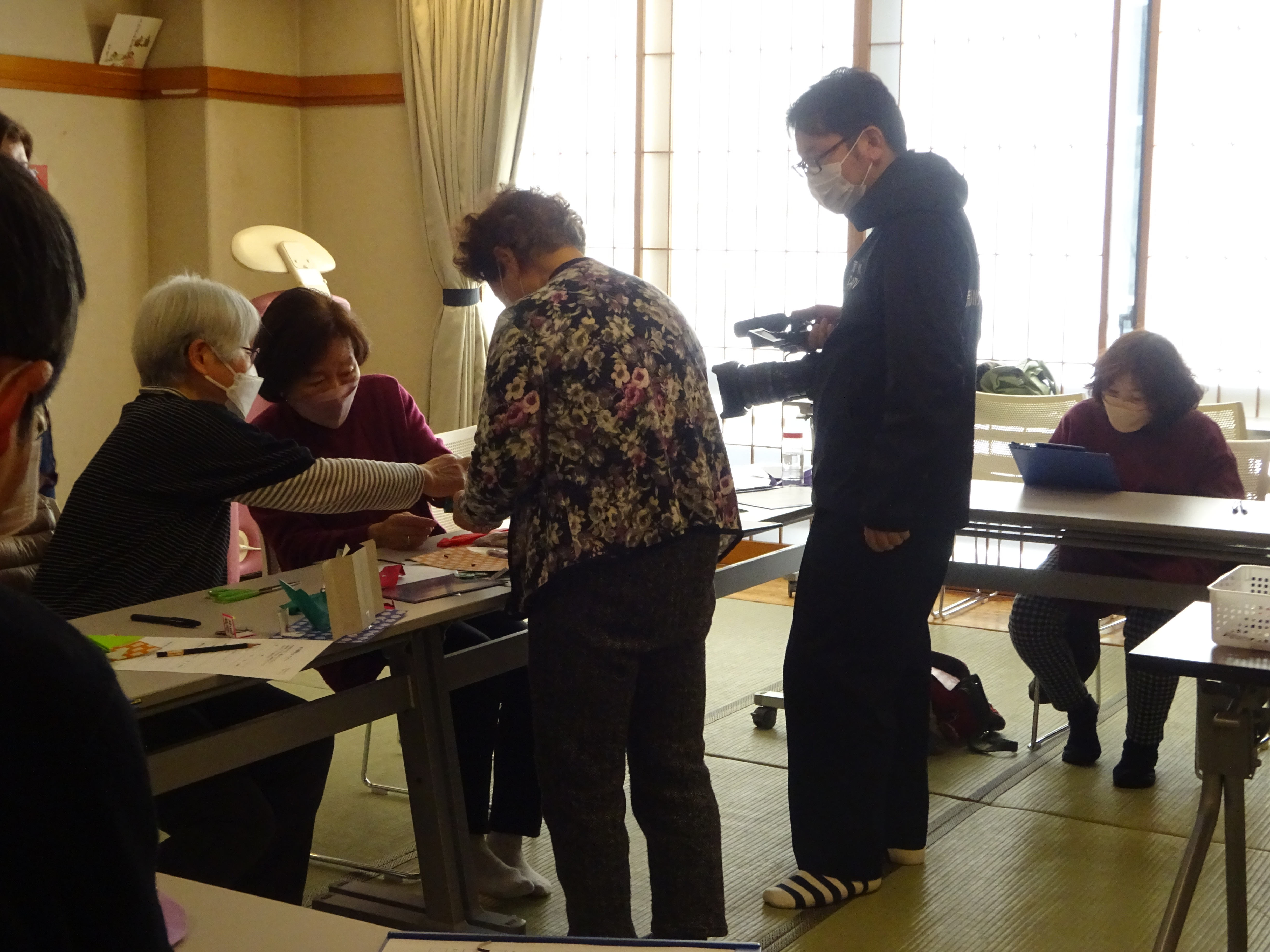 折り紙が始まる前は本日、取材が入る事に「恥ずかしい」などの声があったものの講座が始まると皆さん真剣そのもの