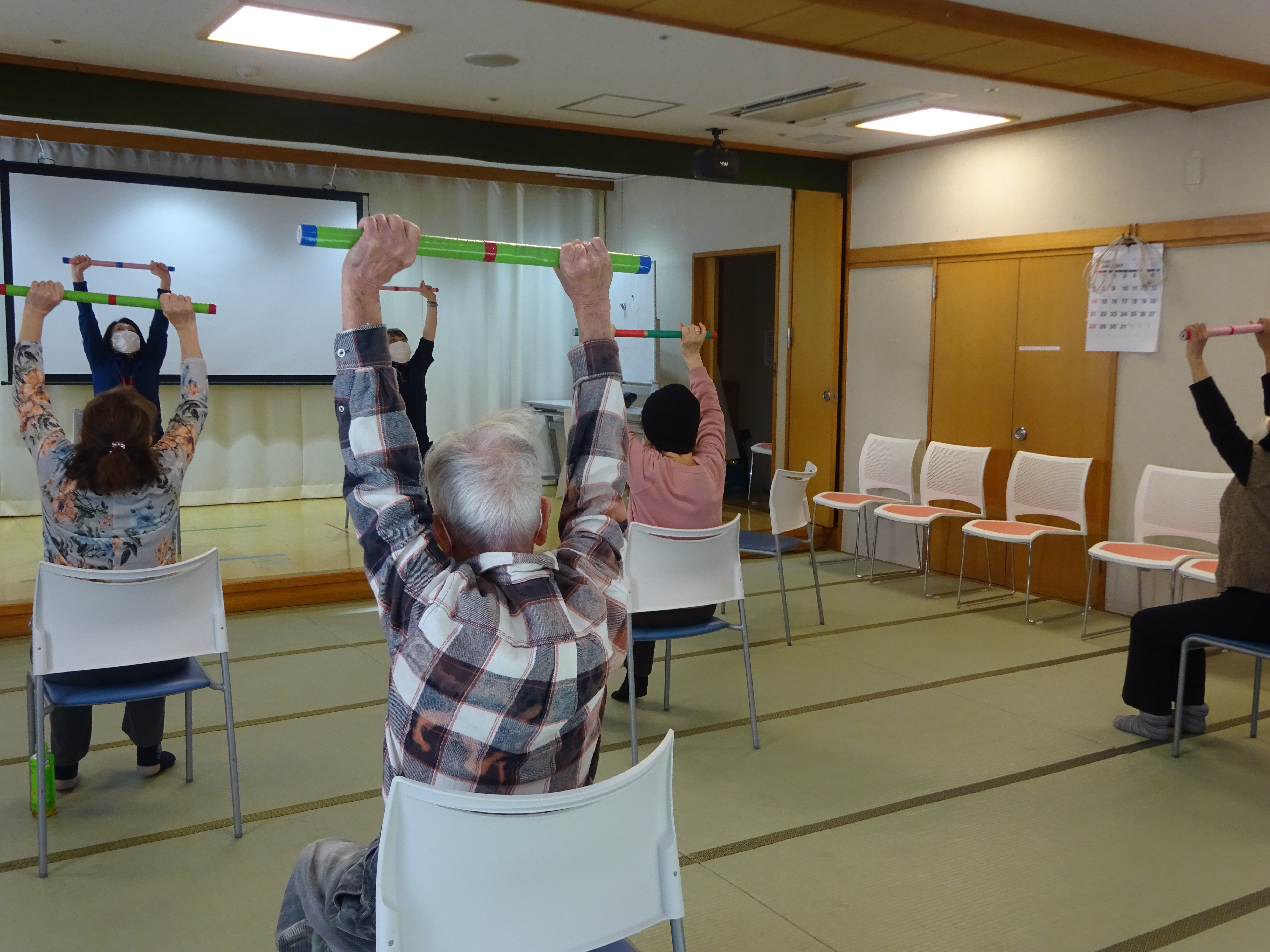 脳トレしながら、笑いながら、楽しく棒体操をしました。