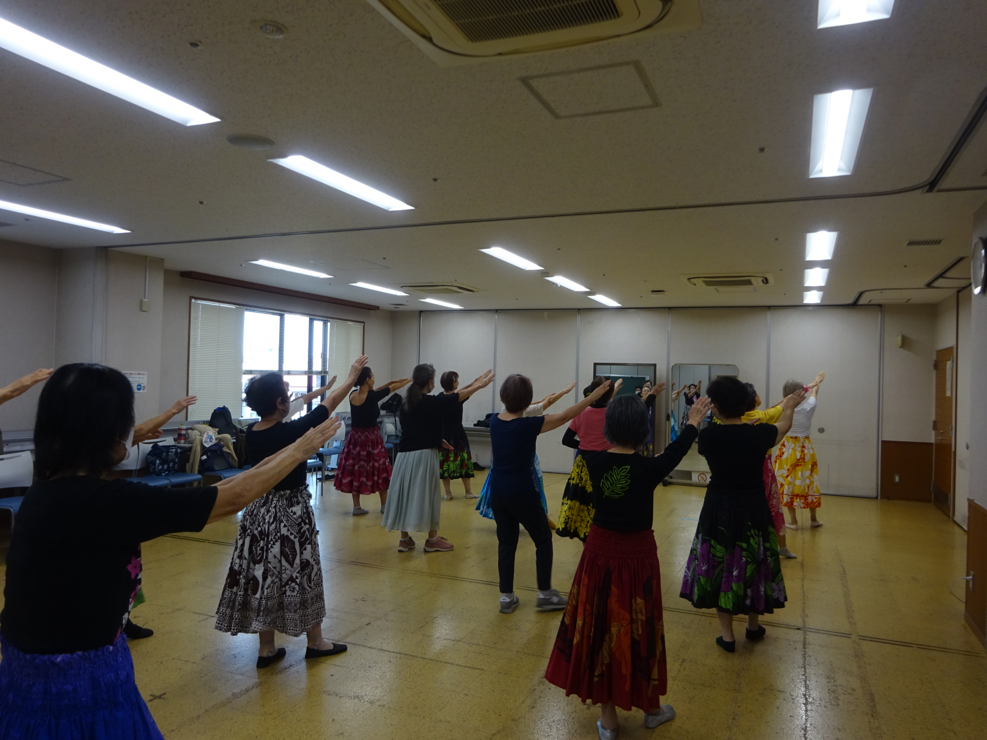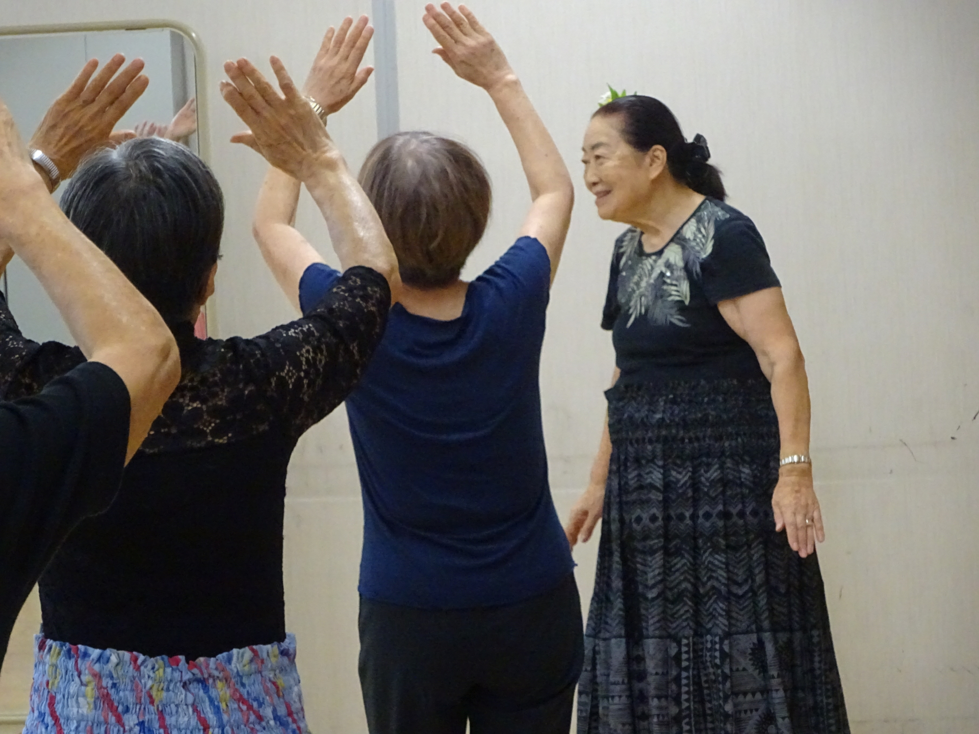 一つひとつの振付を習いながらフラダンスを楽しんでいらっしゃいました。