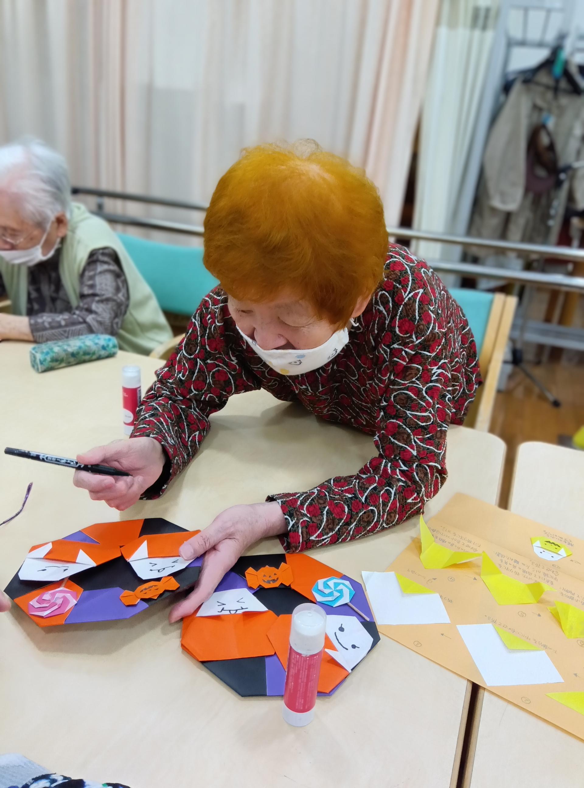 ご利用者の皆様にはおばけの折り紙を折っていただき、キャンディーなども一緒に飾りつけをしました。