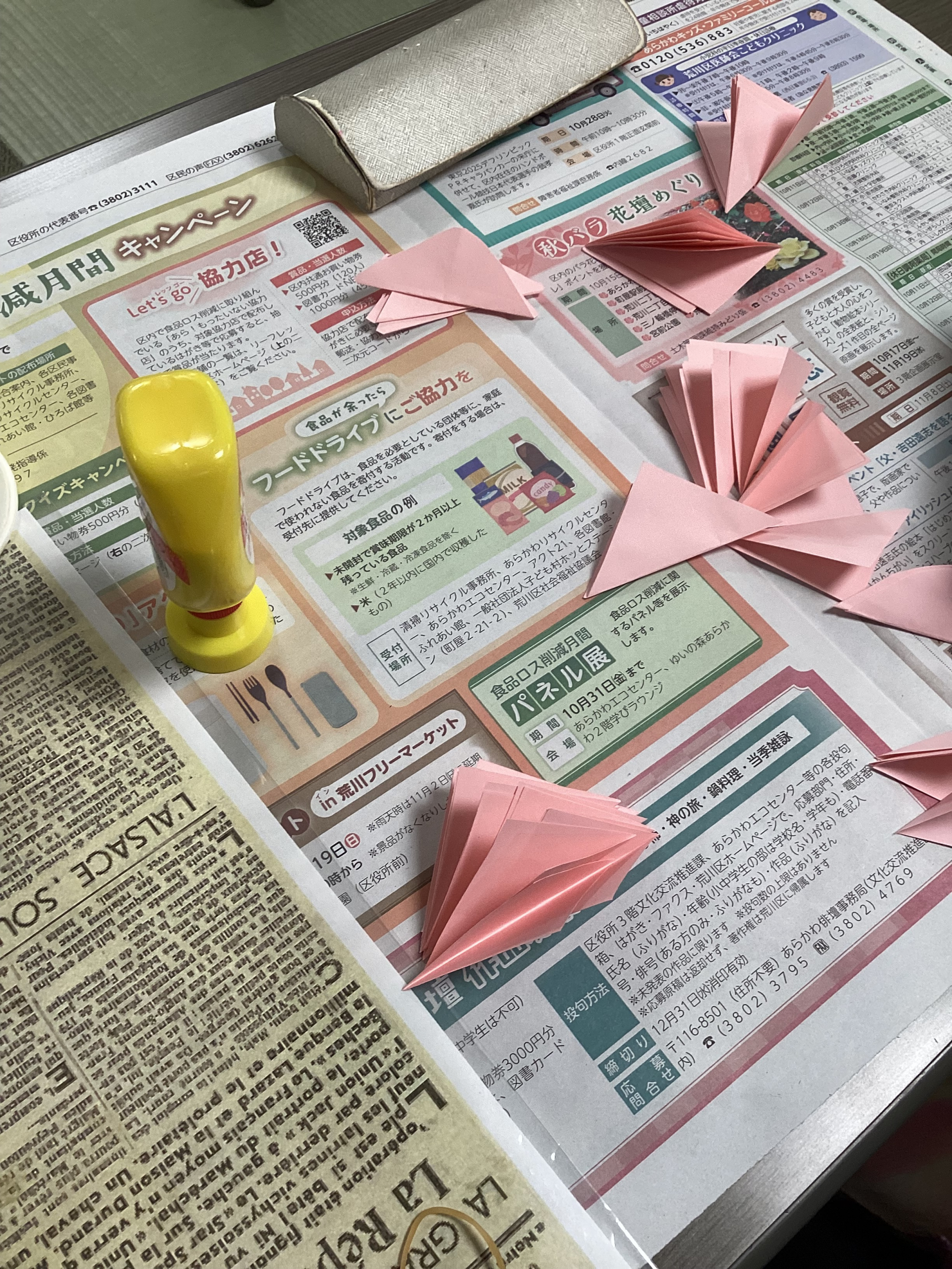 今日はセンターの3階いこい室により、10月の折り紙教室を行いました!!