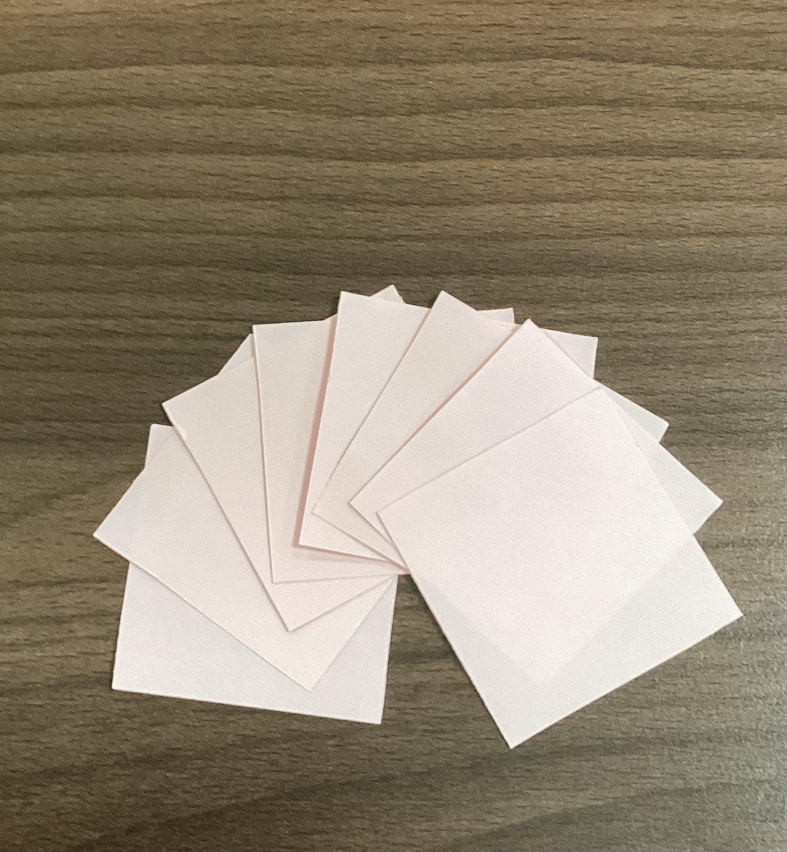 この作品では、5センチ四方のピンクの紙を50枚使用します。