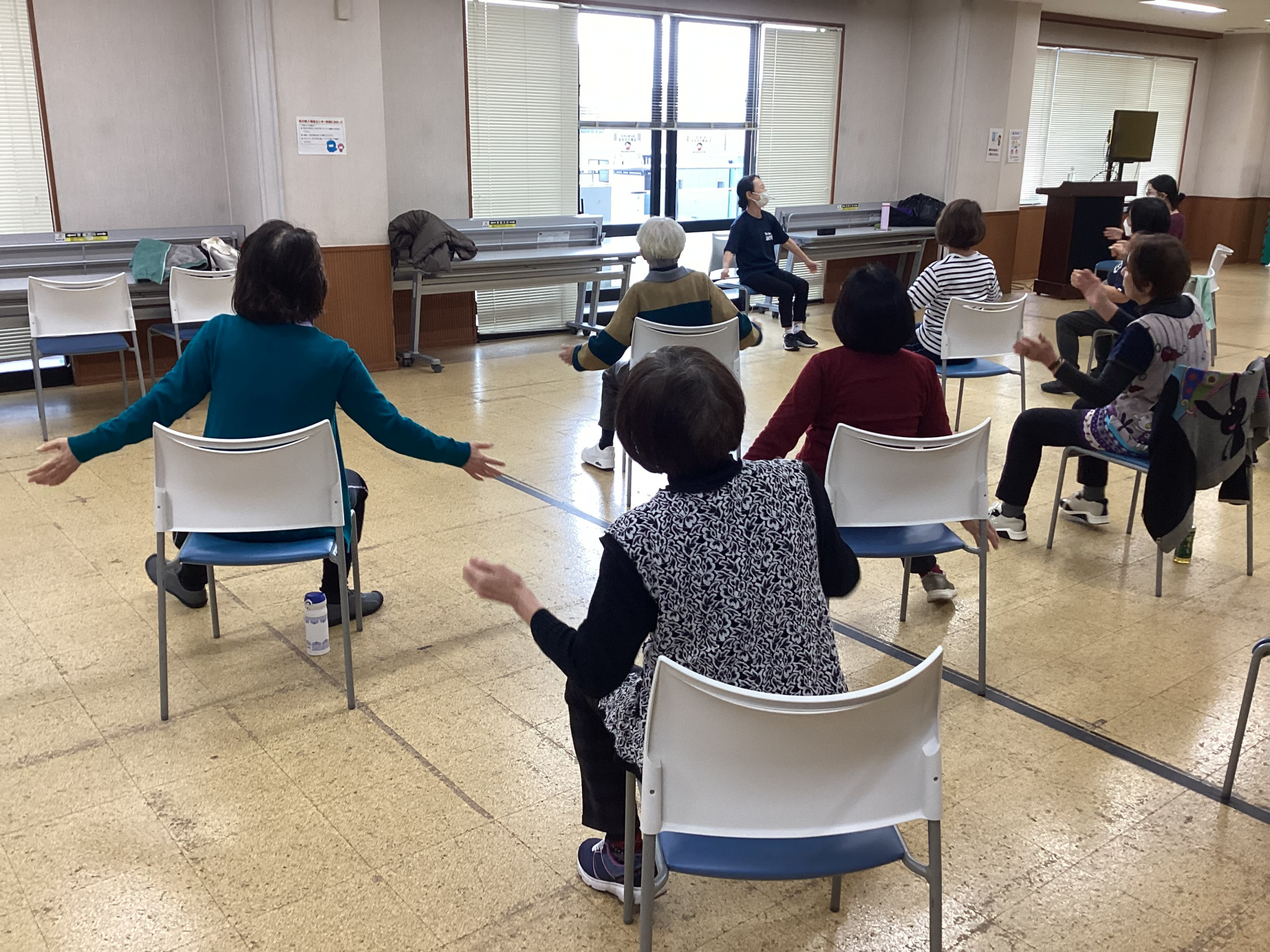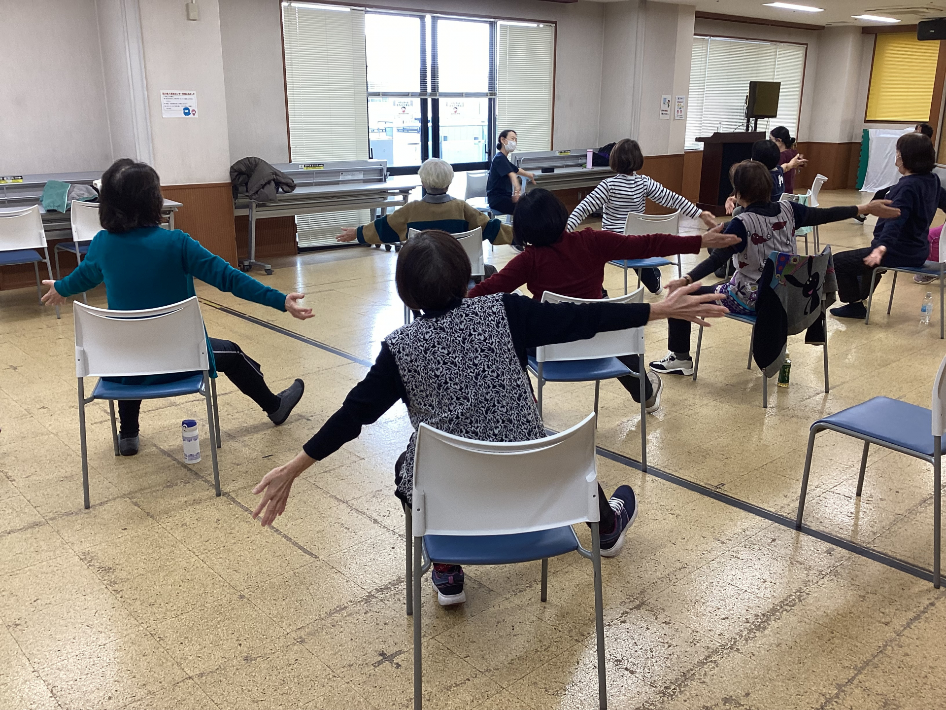 BGMに合わせ少しづつ体を動かし体に適度な負荷をかけていきます!