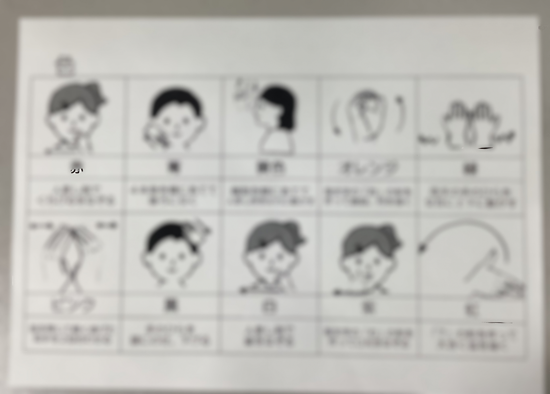 手話の種類の一つである『指文字』と色の手話を使って自己紹介の手話を学んで