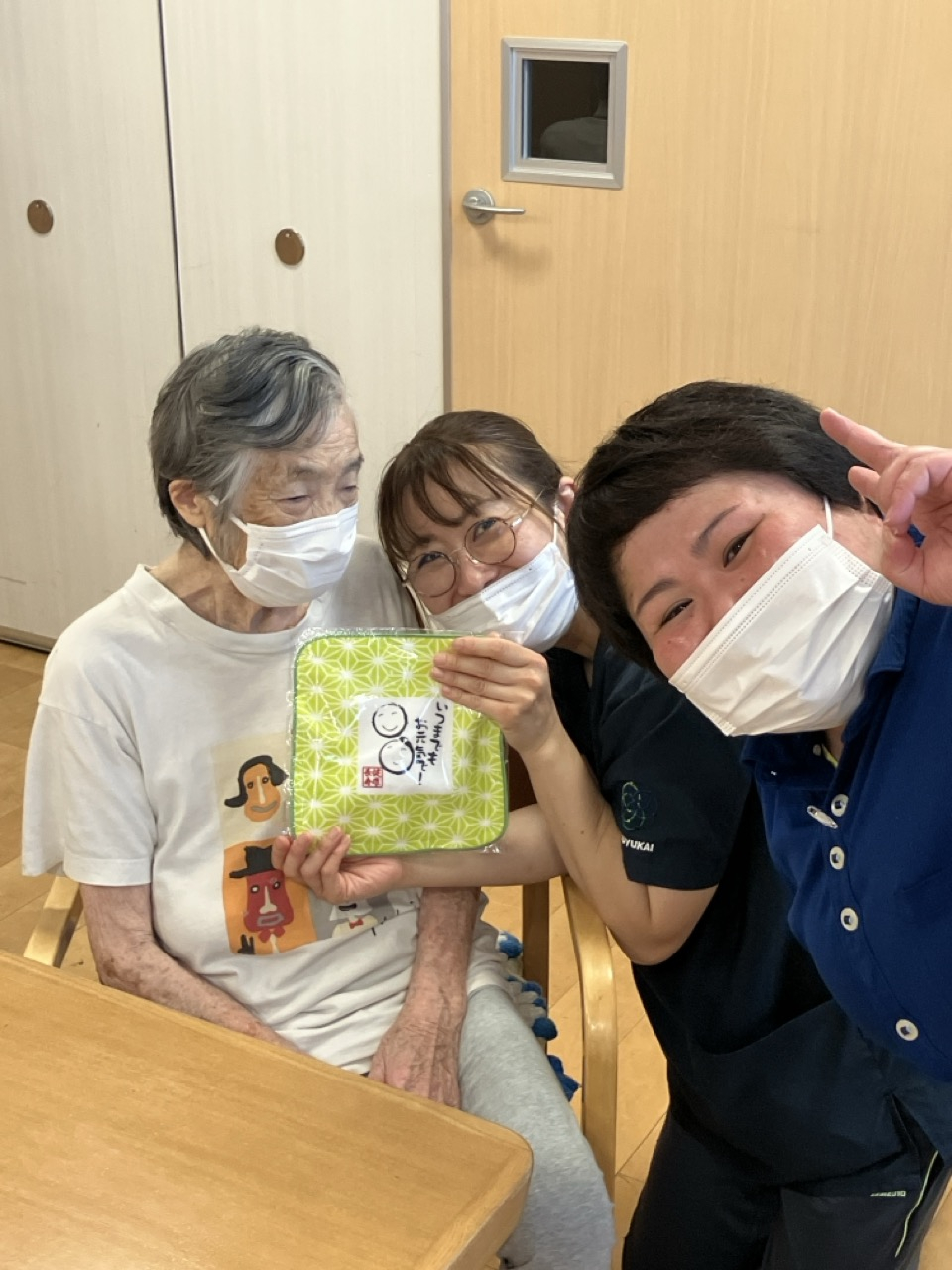 これからもお元気で淡路デイにご来所下さいね。」職員一同。