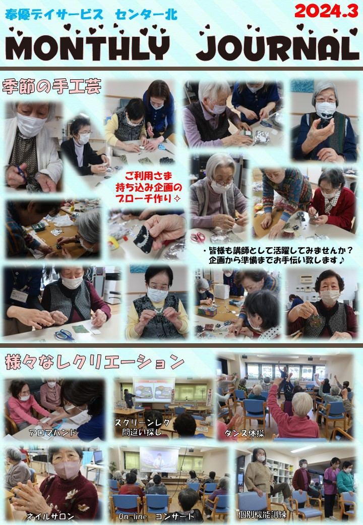 2024.03.29 お知らせ 【センター北】3月センキタ新聞 Tweet シェアする 3月のセンキタ新聞です。 新人(周藤)が頑張って皆さんの事を考え作りました! センター北 周藤 前の記事 2024.04.01 お知らせ 【センター北】昼食リニューアルしました 次の記事 2024.03.27 お知らせ 【センター北】4月昼食メニュー表 一覧へ戻る