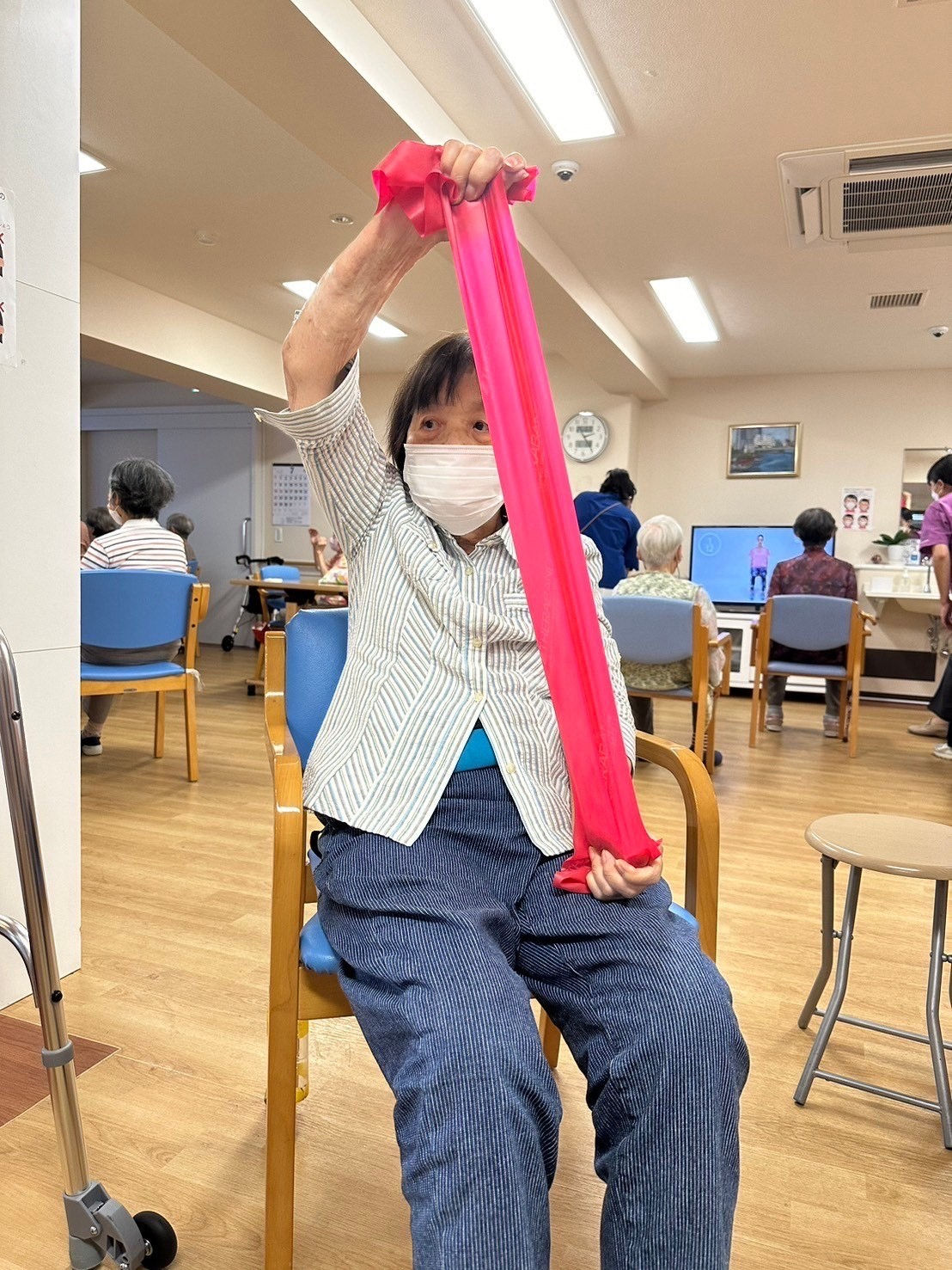 セラバンドは握力が弱い方でもしっかりと手にフィットし、ゴムの強度も弱めから始められるので高齢の方でも安心して行えます。