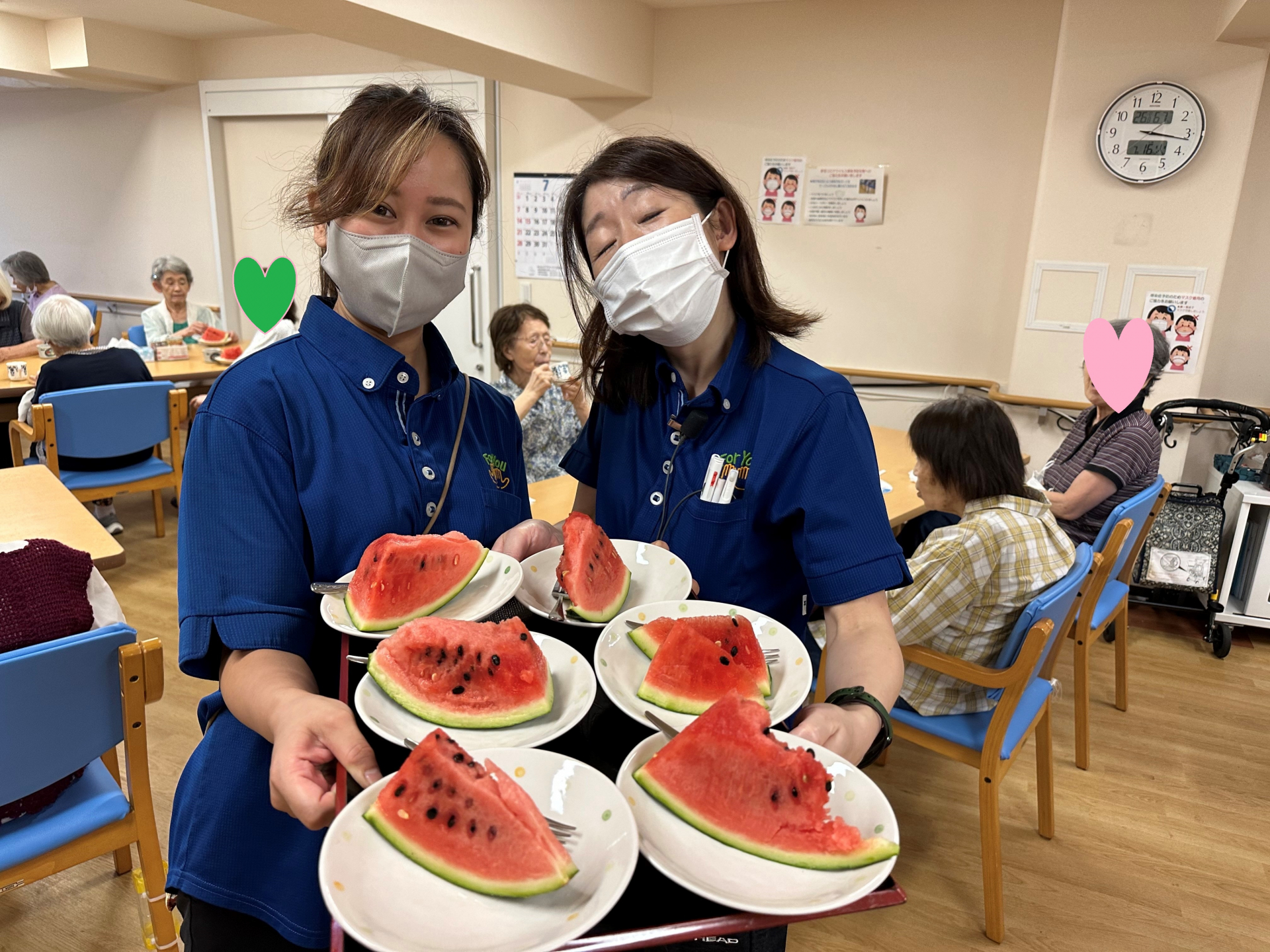 今日の利用者様の分もスイカの準備あった?よしっ!夏だ!海だ!スイカ祭り続編!