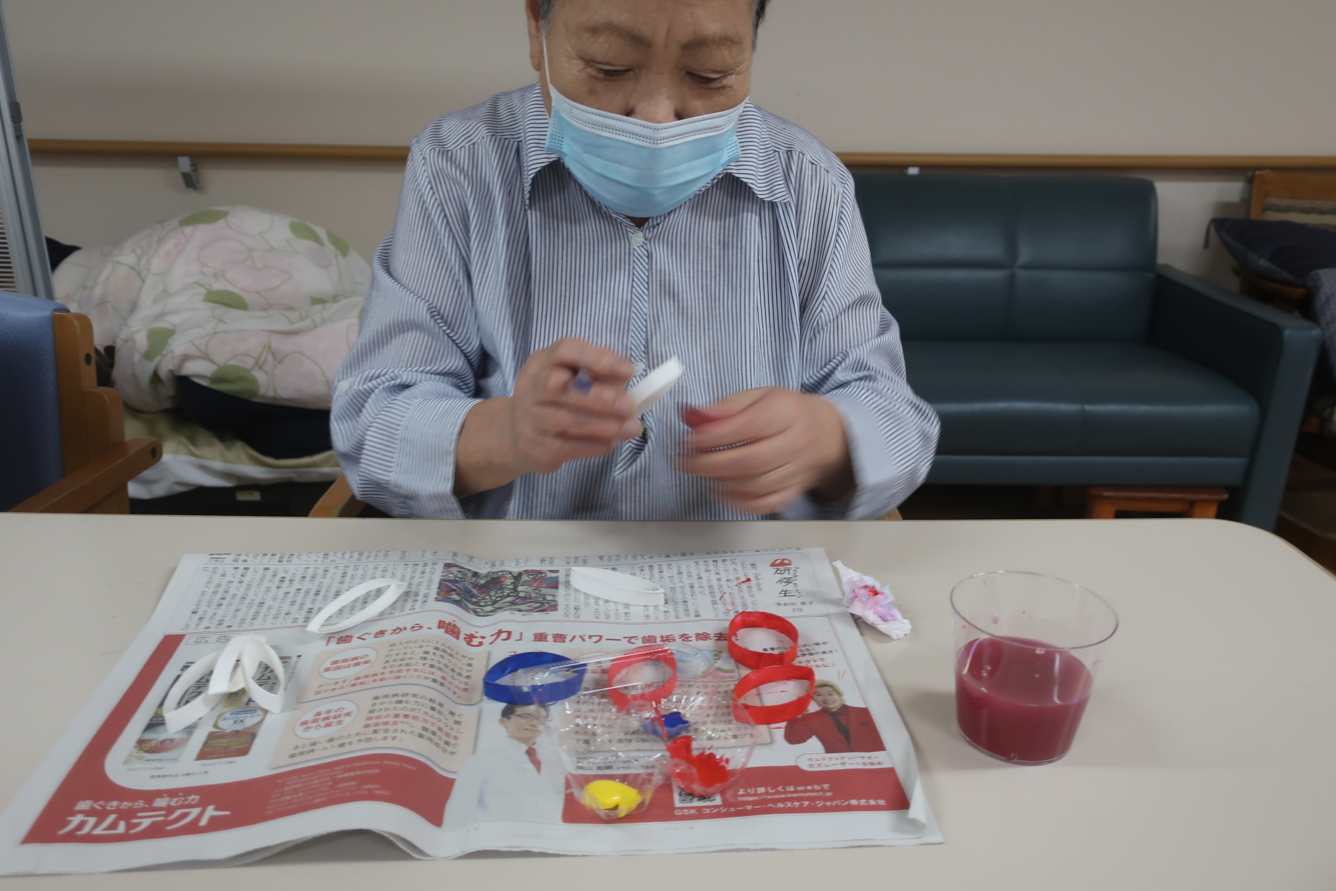 月替わりの手工芸プログラム☆☆今月は、ペーパーの芯を再利用した工作をしています。