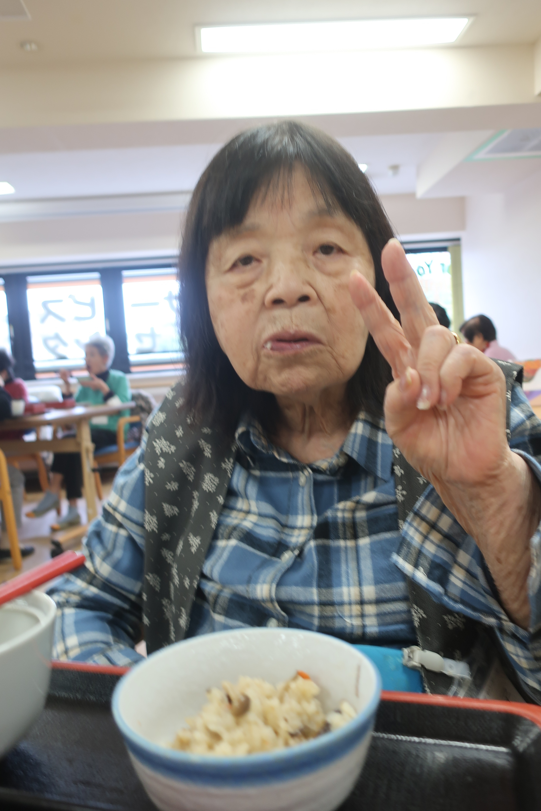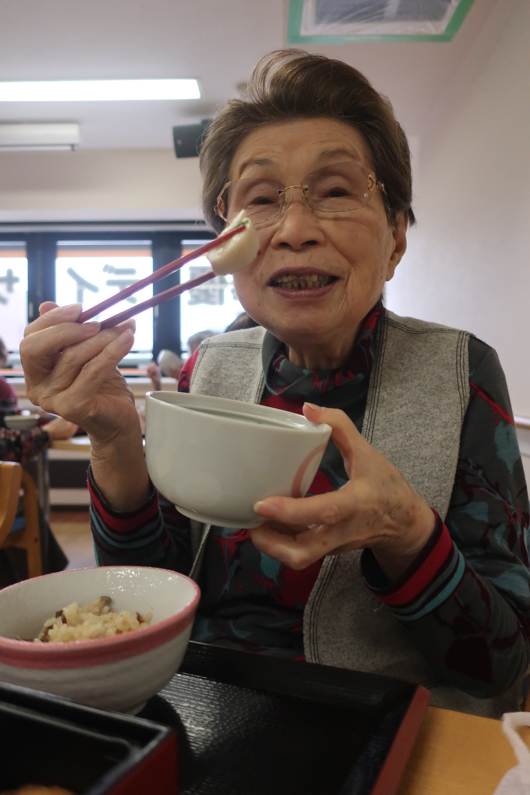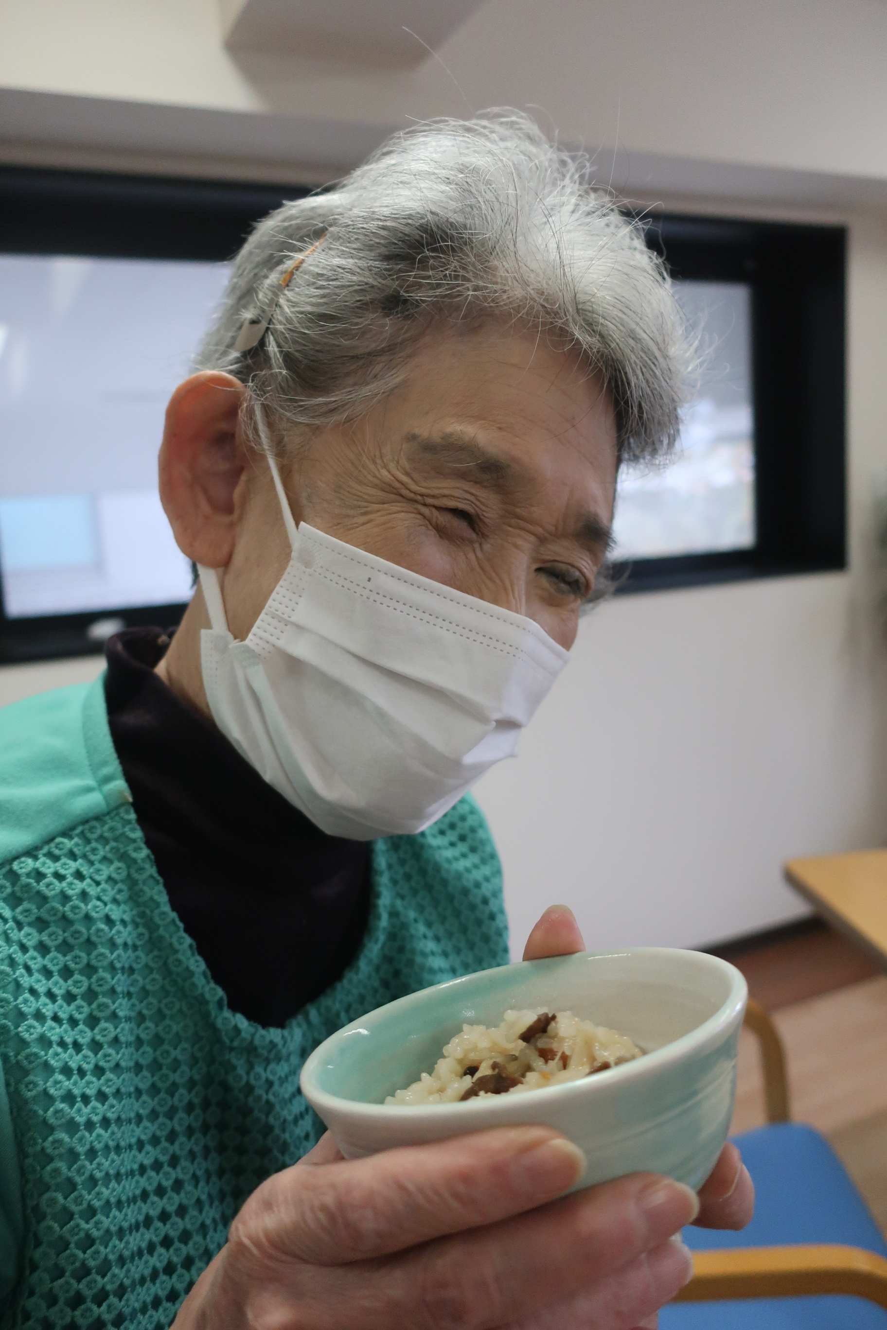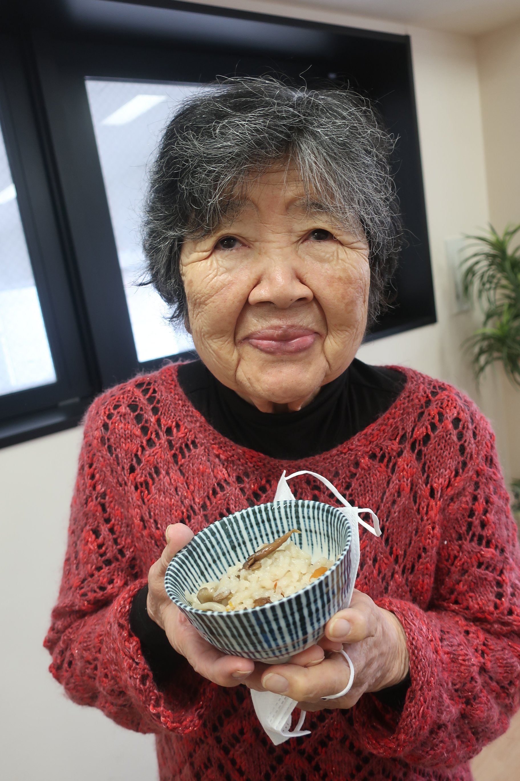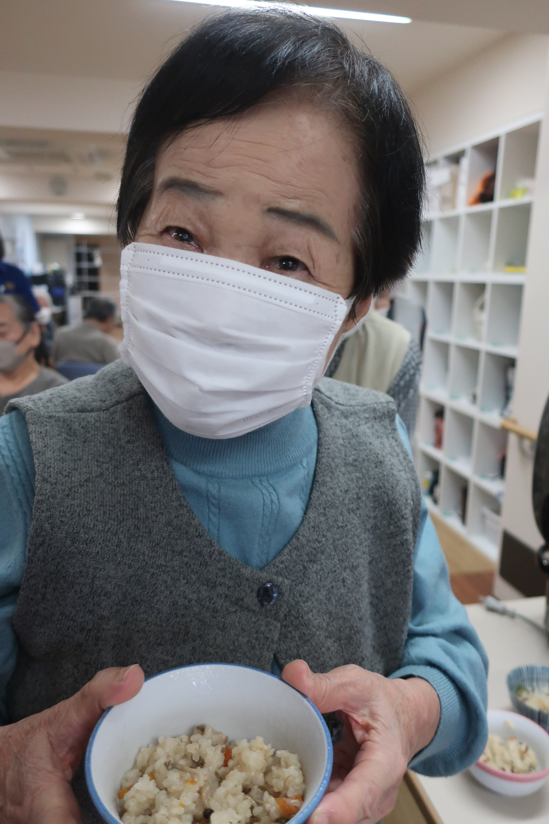 きのこご飯を受け取ると・・・皆様ニッコリです!