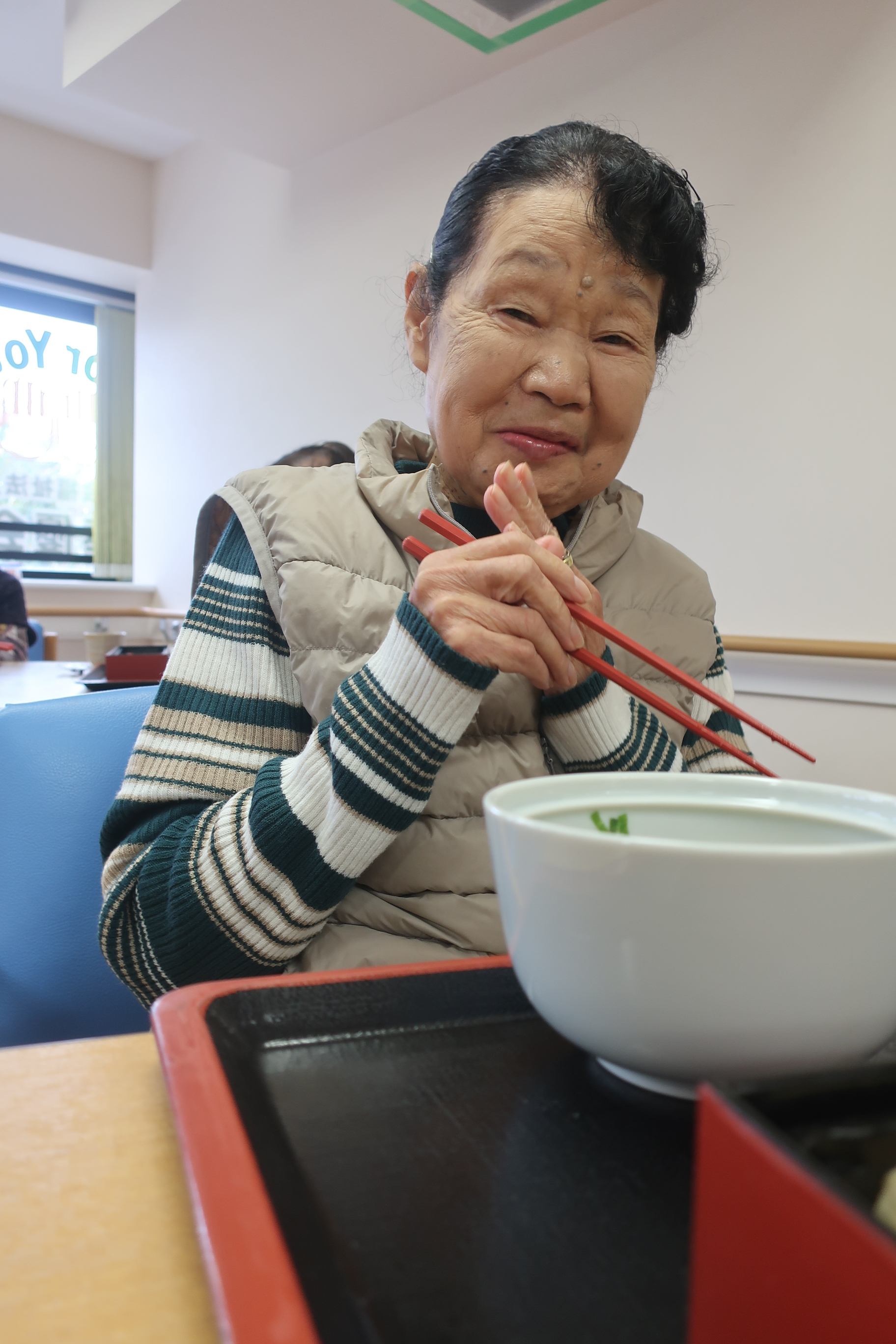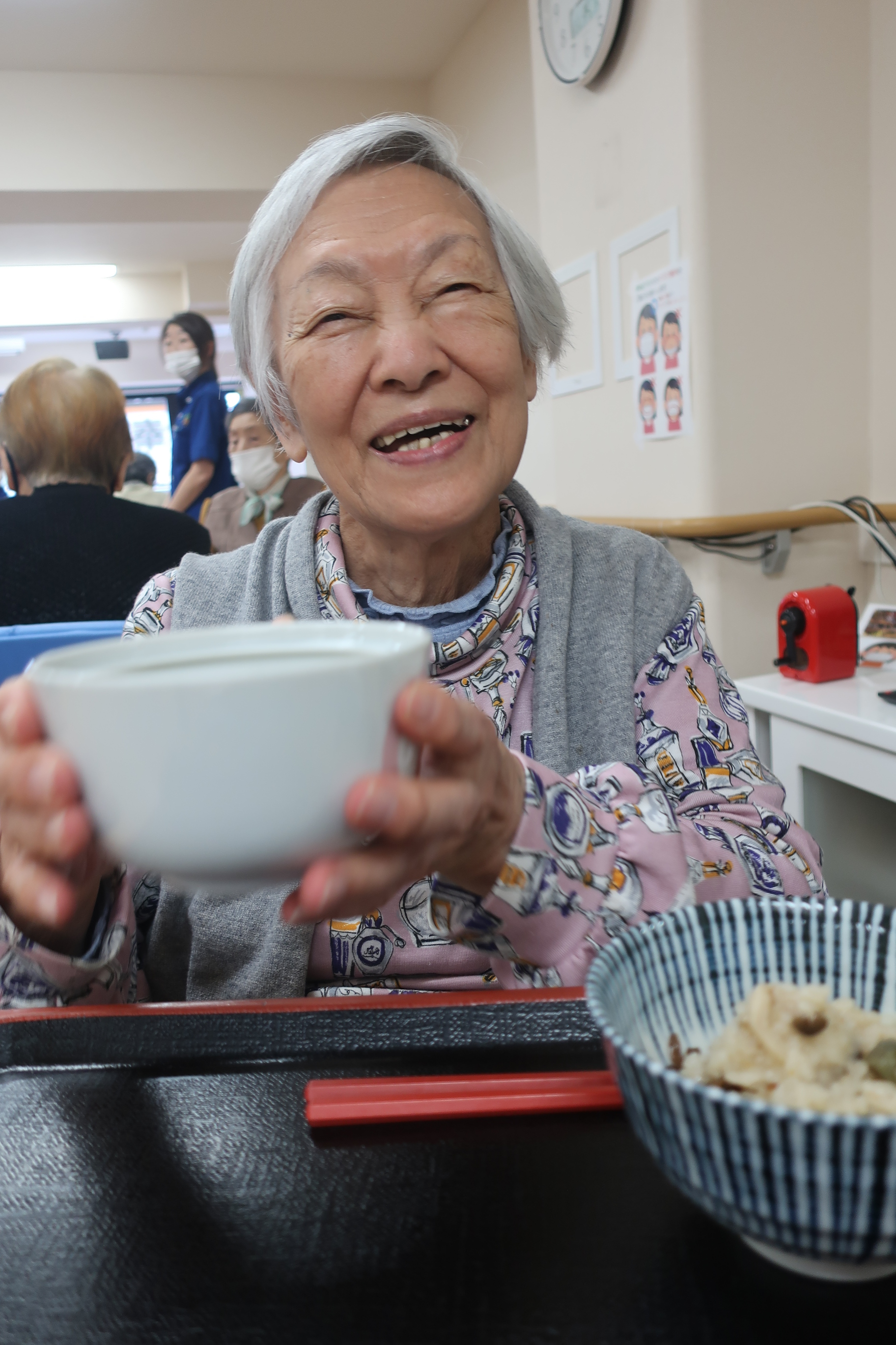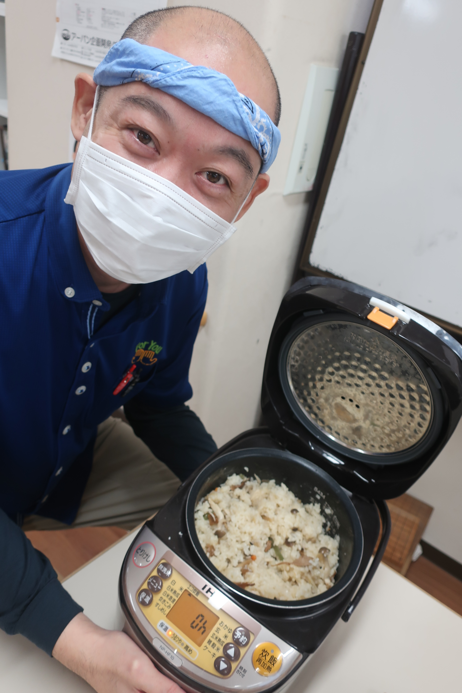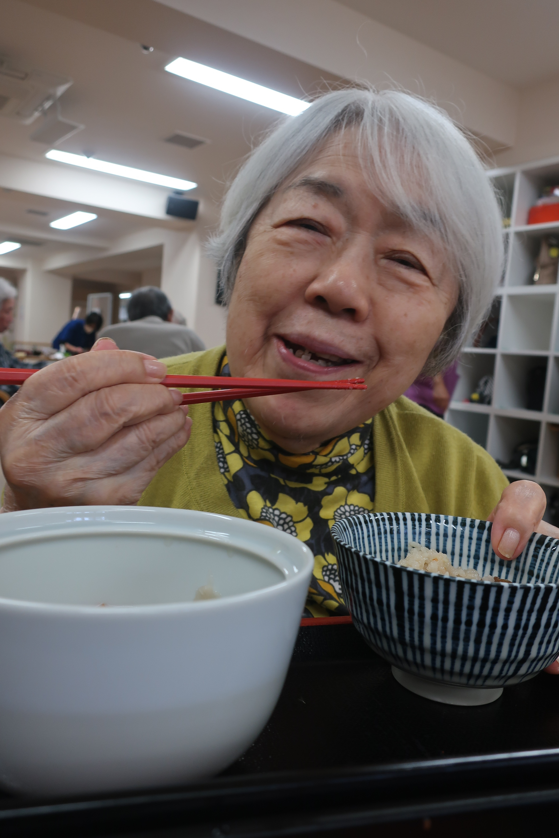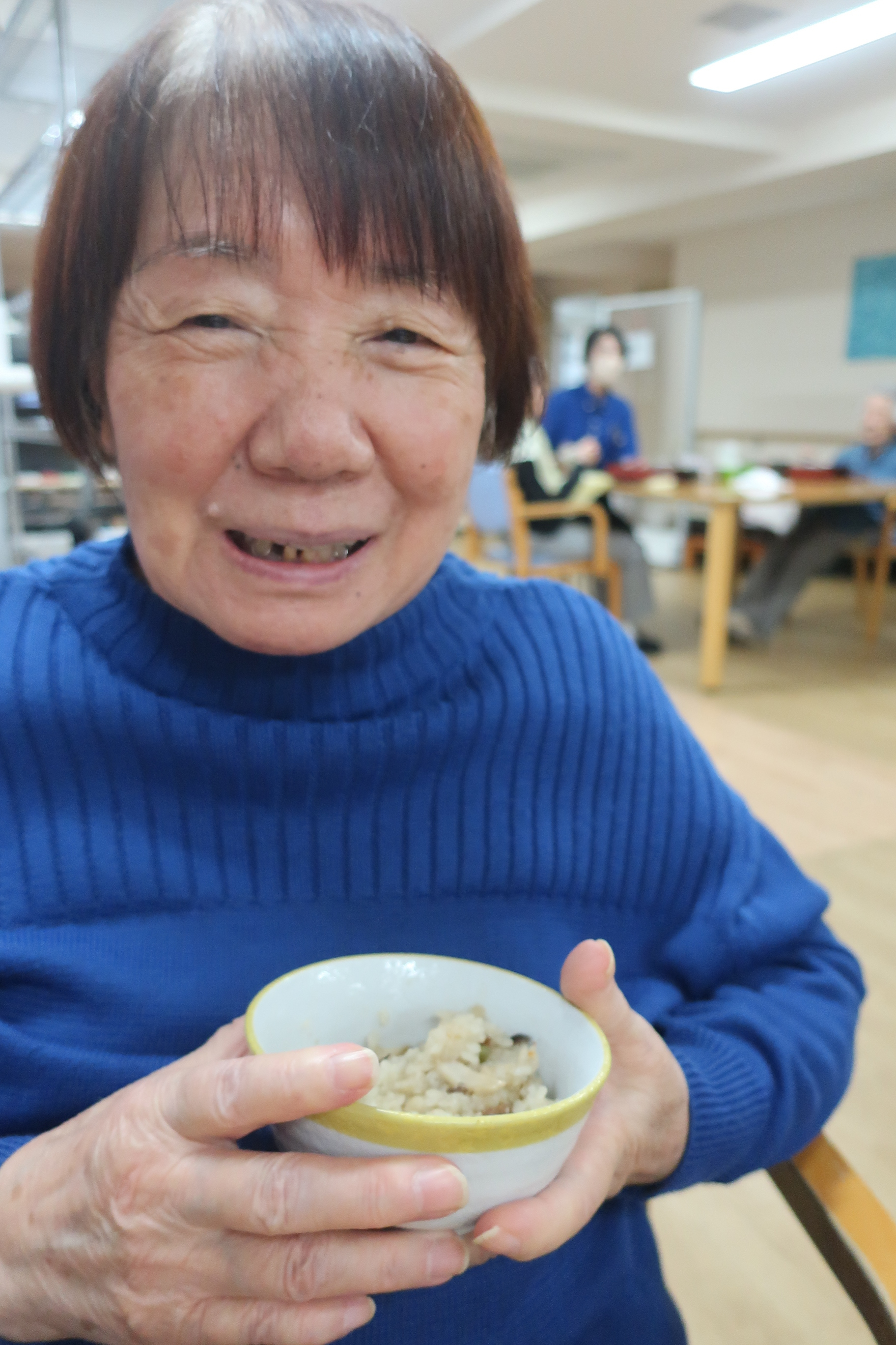 きのこご飯を受け取ると・・・皆様ニッコリです!
