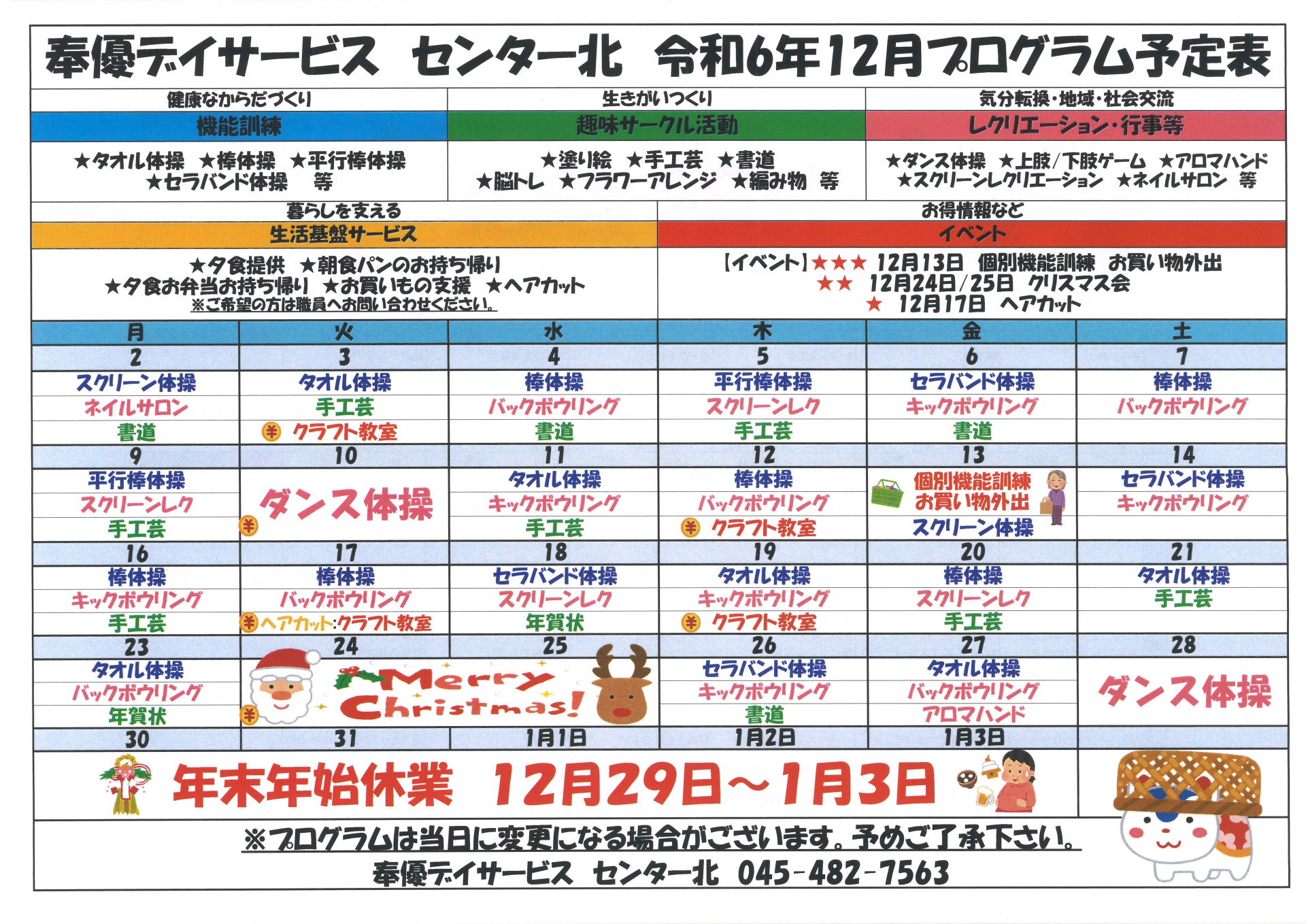 24日はChristmasランチ 25日はお楽しみ会とビンゴ大会!