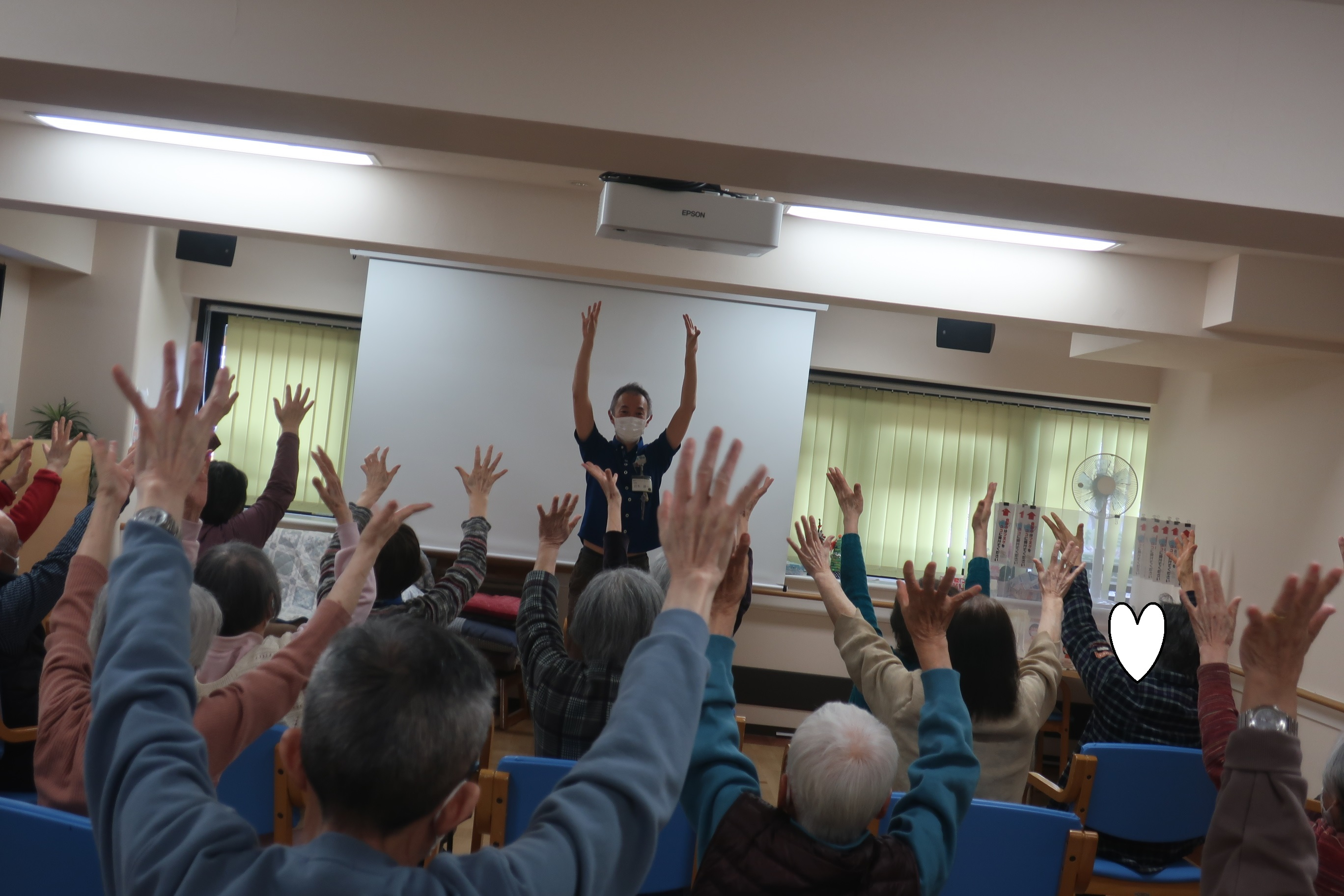 午後のプログラム【ダンス体操】今日はクリスマスイヴの歌に合わせて元気に運動を行いました。