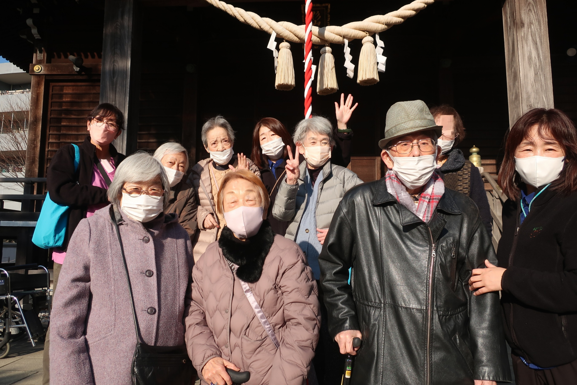 初詣後は、皆様で記念写真。久しぶりの参拝で楽しい一日をお過ごしの様子でした。