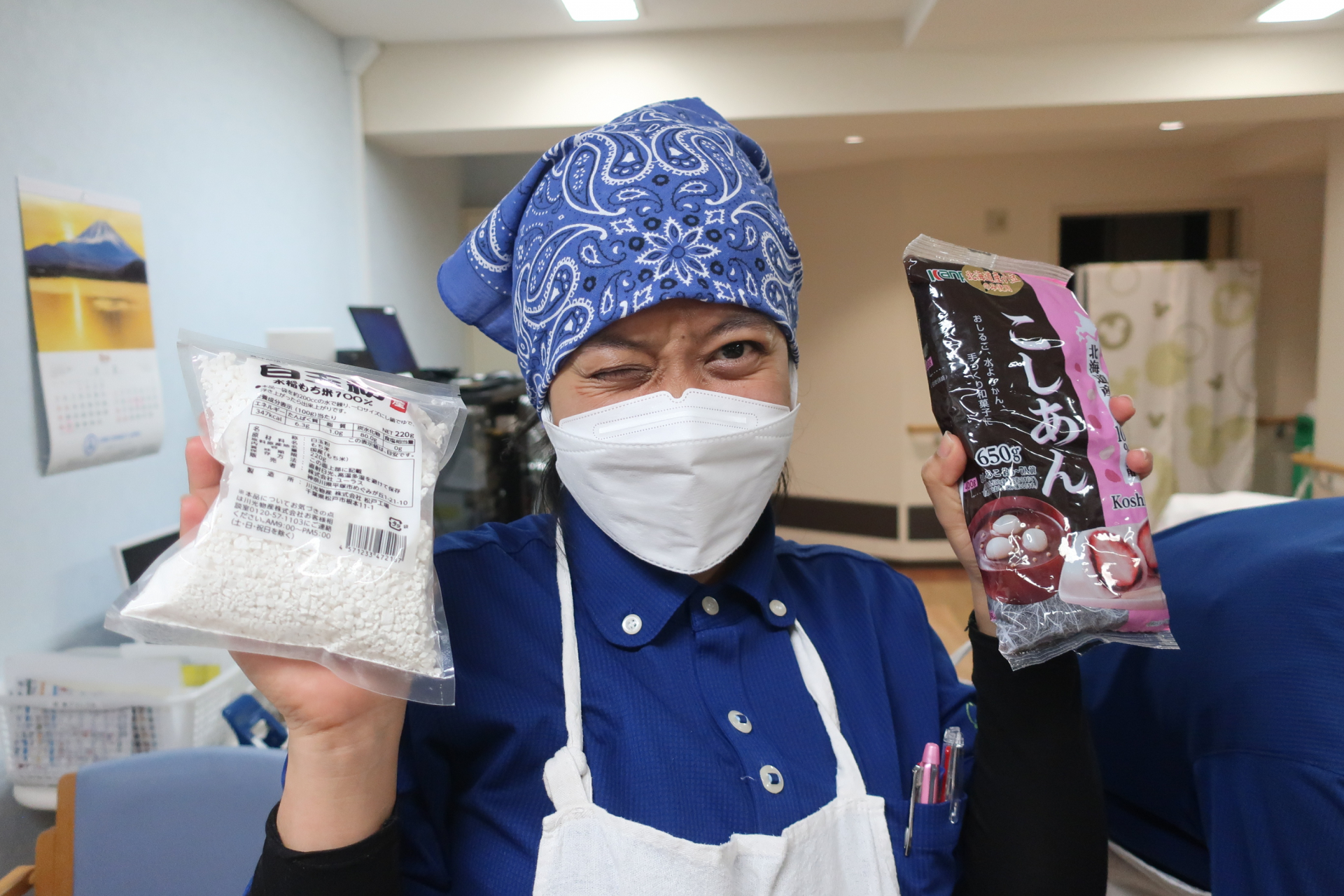 有志6名にて作る本日のsweetは! 二十日正月らしく白玉ぜんざいでっす!